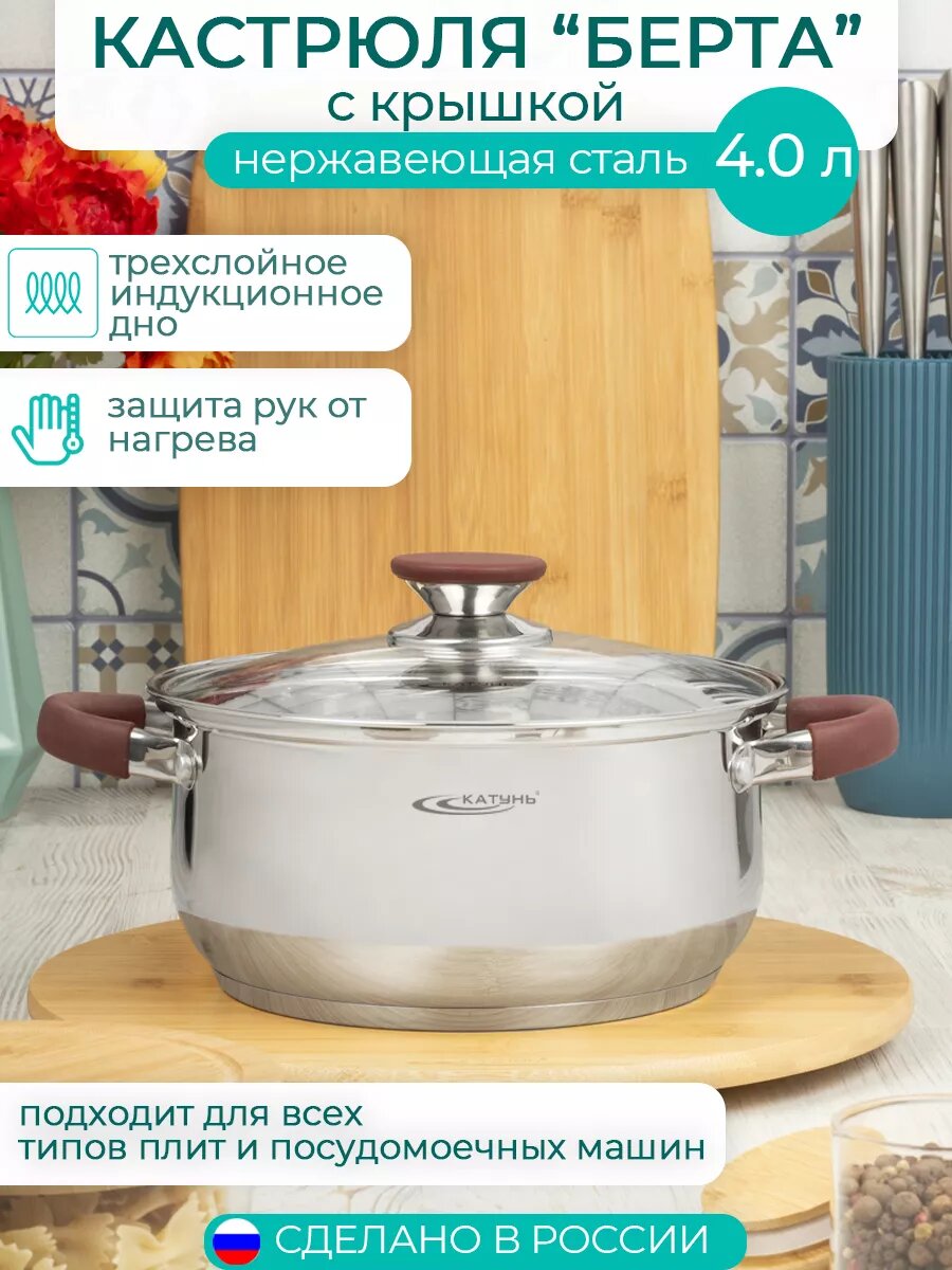 Купить Кастрюля 4 л катунь, берта, КТ15-D-22, индукция, нерж.сталь, зеркальная полировка
