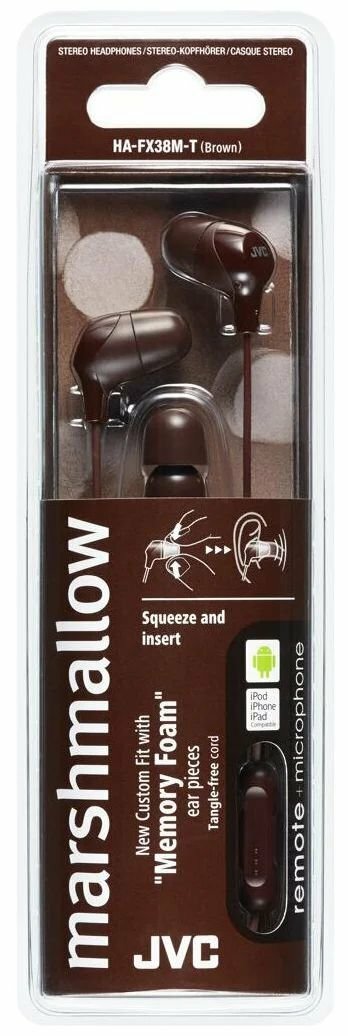 Наушники JVC HA-FX38M-T-E Marshmallow внутриканальные, проводные, встроенный микрофон, ПДУ, коричневые