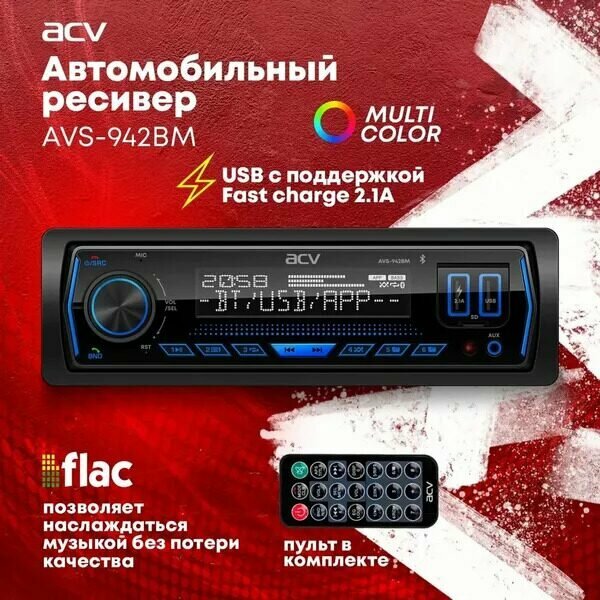 Автомобильный ресивер с BLUETOOTH, USB, изменяемой подсветкой ACV AVS-942BM