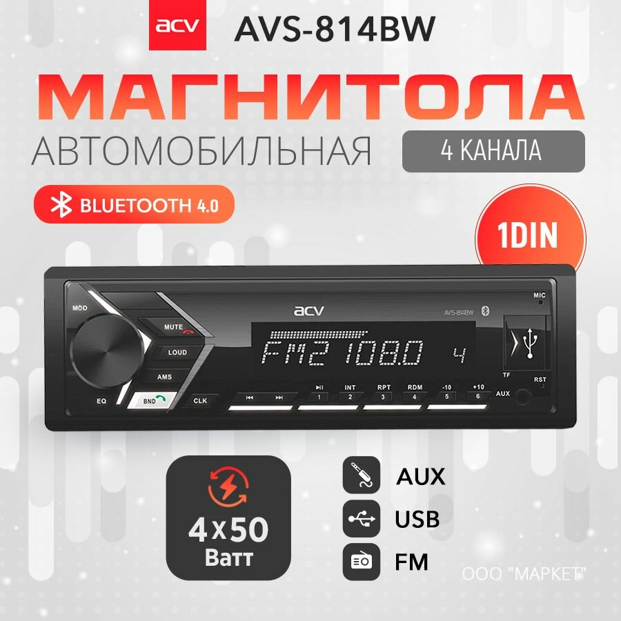 Автомагнитола ACV Avs-814bw 1DIN 4x50Вт .