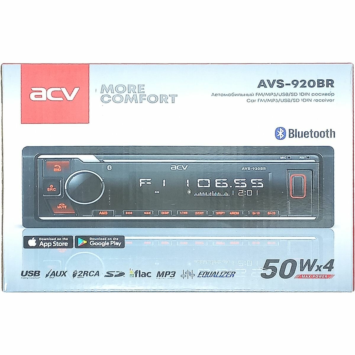 Купить Автомагнитола, магнитола для авто ACV AVS-920BR красная подсветка, 1din, Bluetooth, USB, AUX, 2RCA