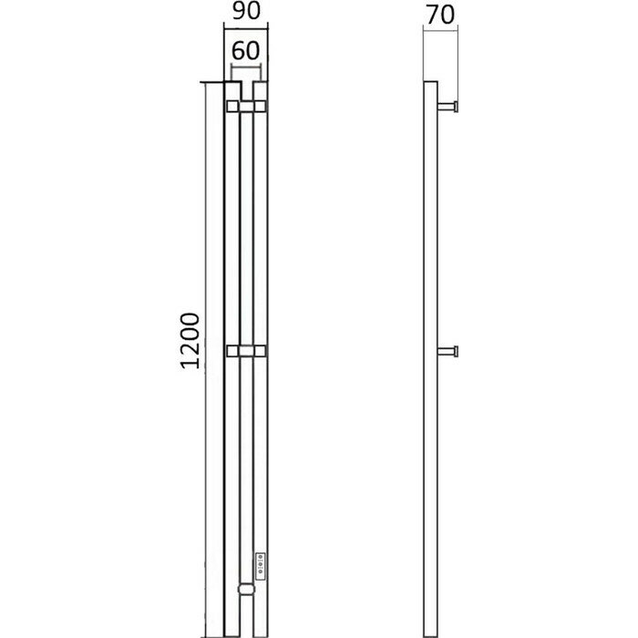 Полотенцесушитель электрический 60мм 1200мм профильный 120х6 правый монтаж Маргроид