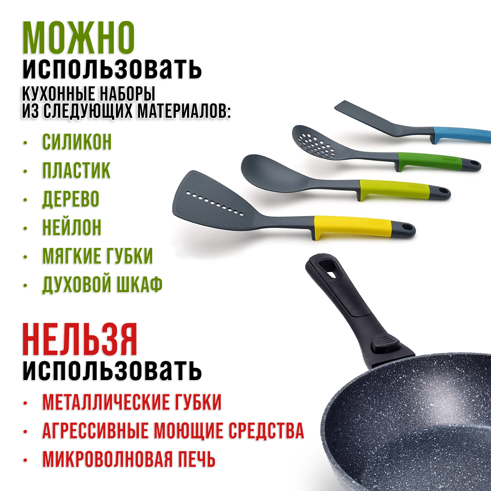 | Минусы: | Лучше использовать деревянные, силиконовые лопатки |