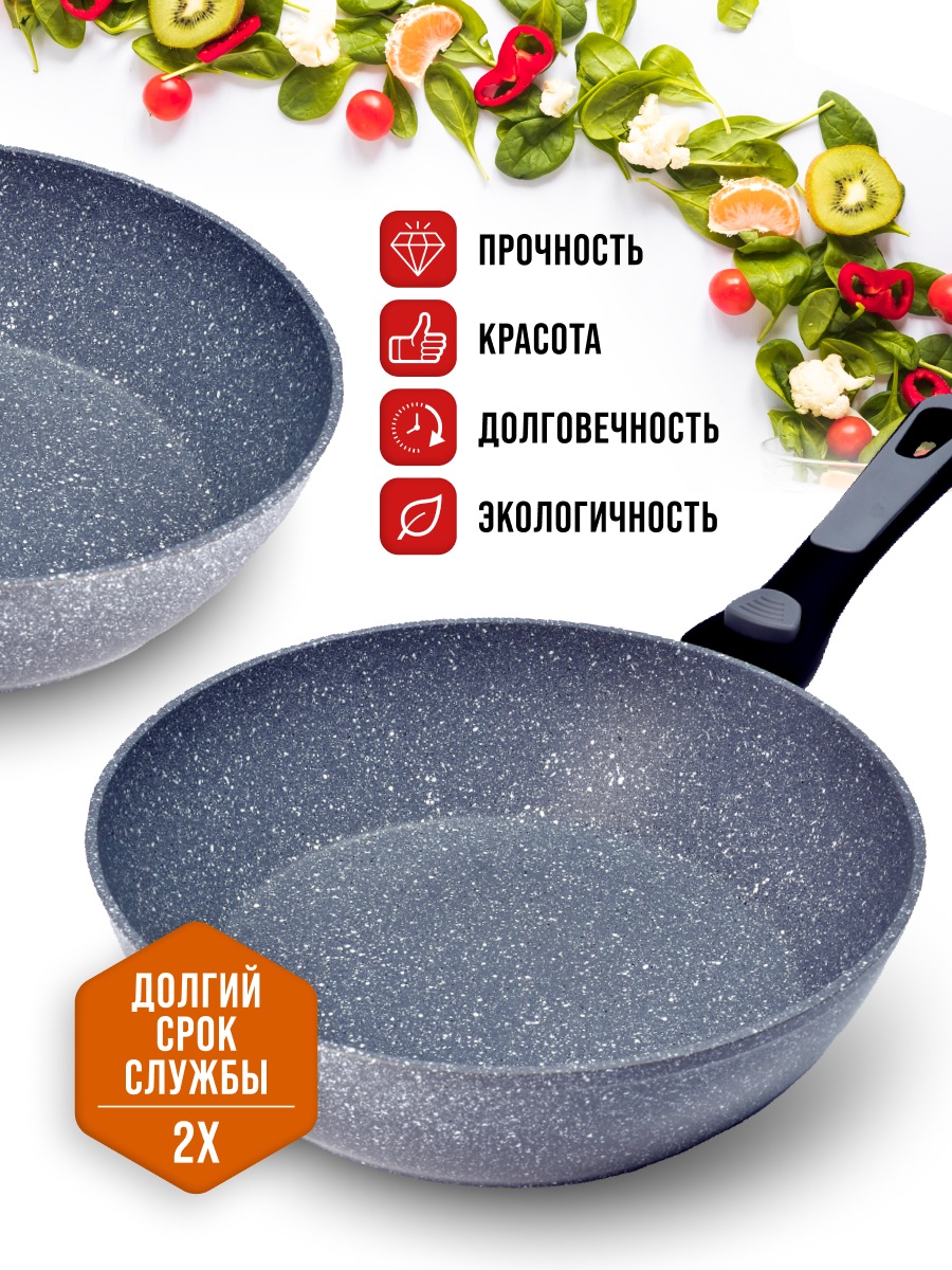 Сковорода 28 см мраморным покрытием и съемной ручкой