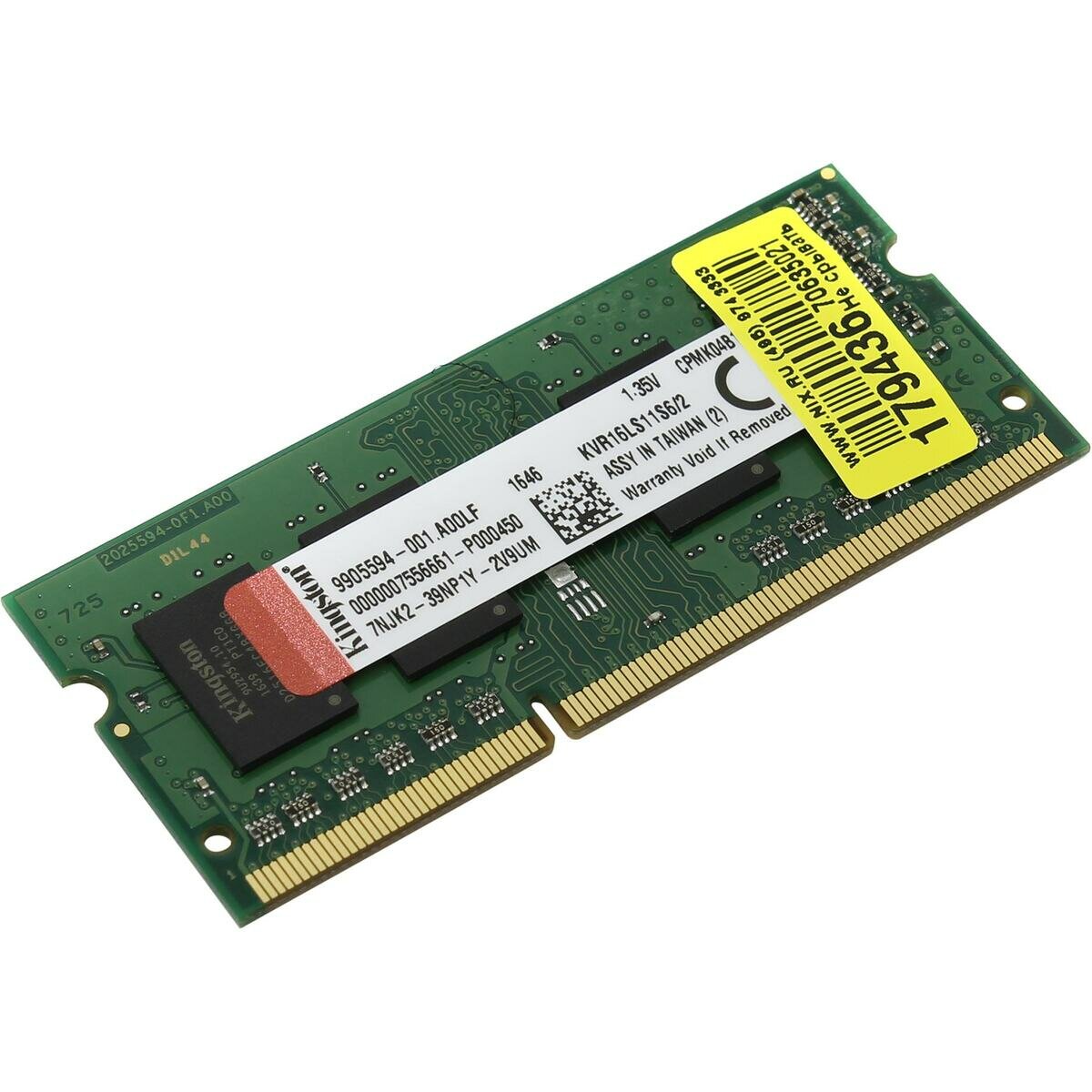 Модуль памяти Kingston DDR3L SO-DIMM2Gb 1600МГц CL11 (KVR16LS11S6/2), 1583905