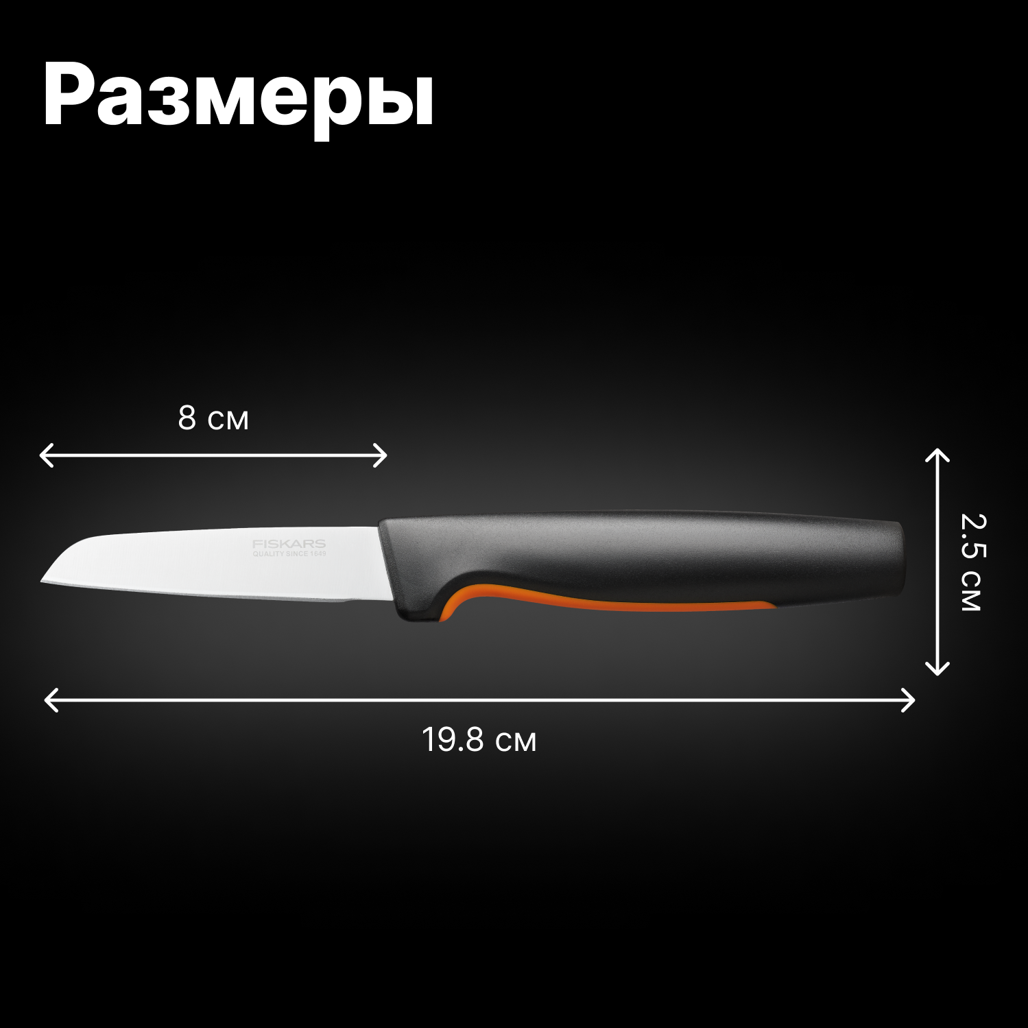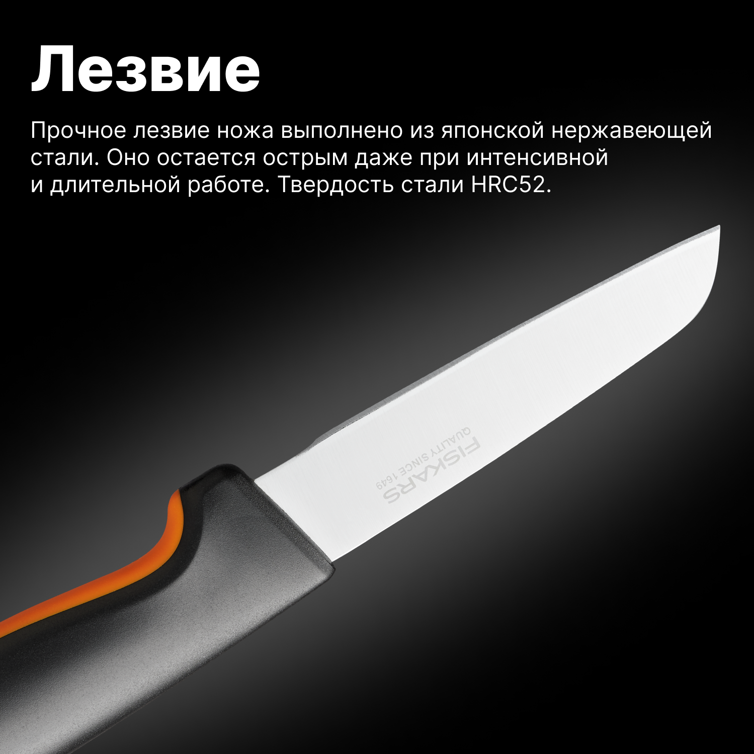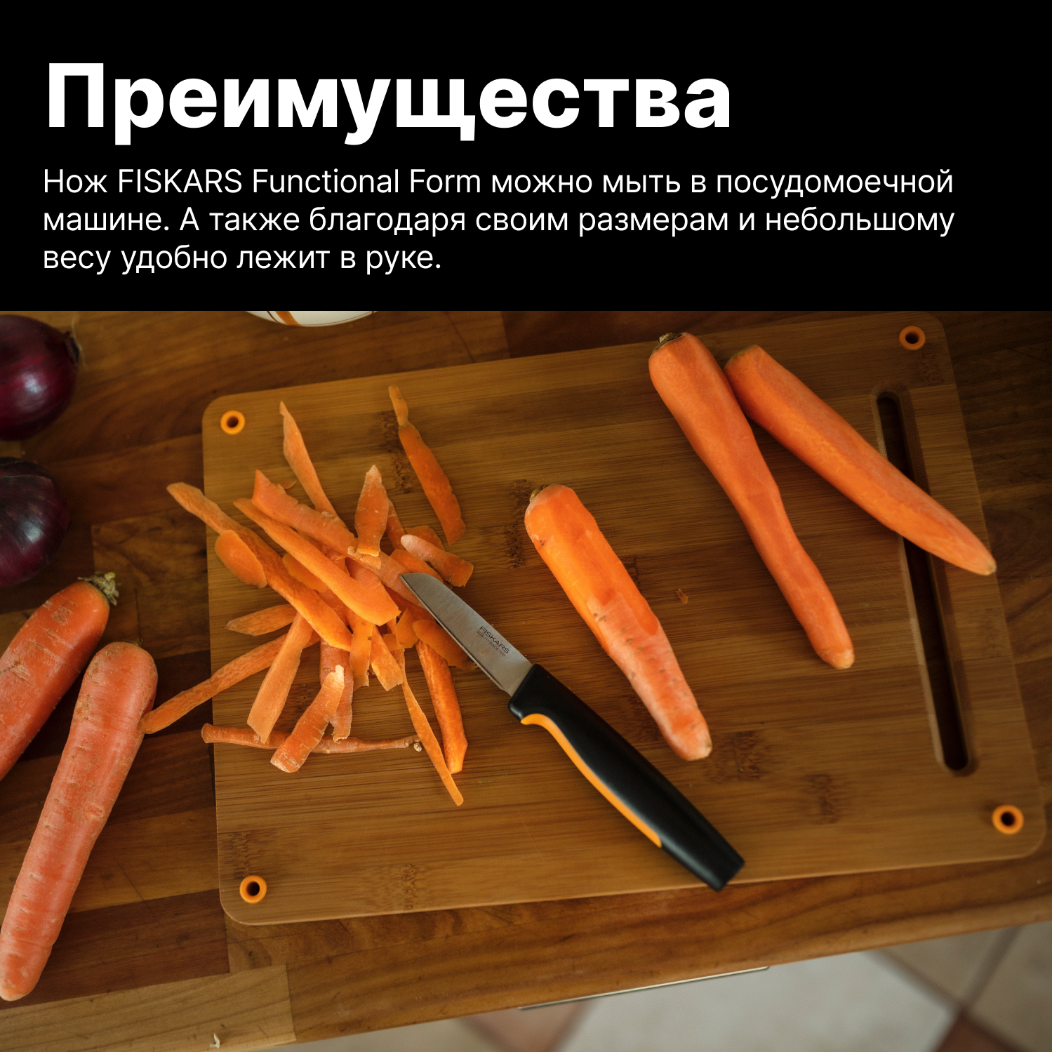 Нож кухонный Fiskars Functional Form 1057544 стальной для овощей лезв.80мм прямая заточка черный/ора