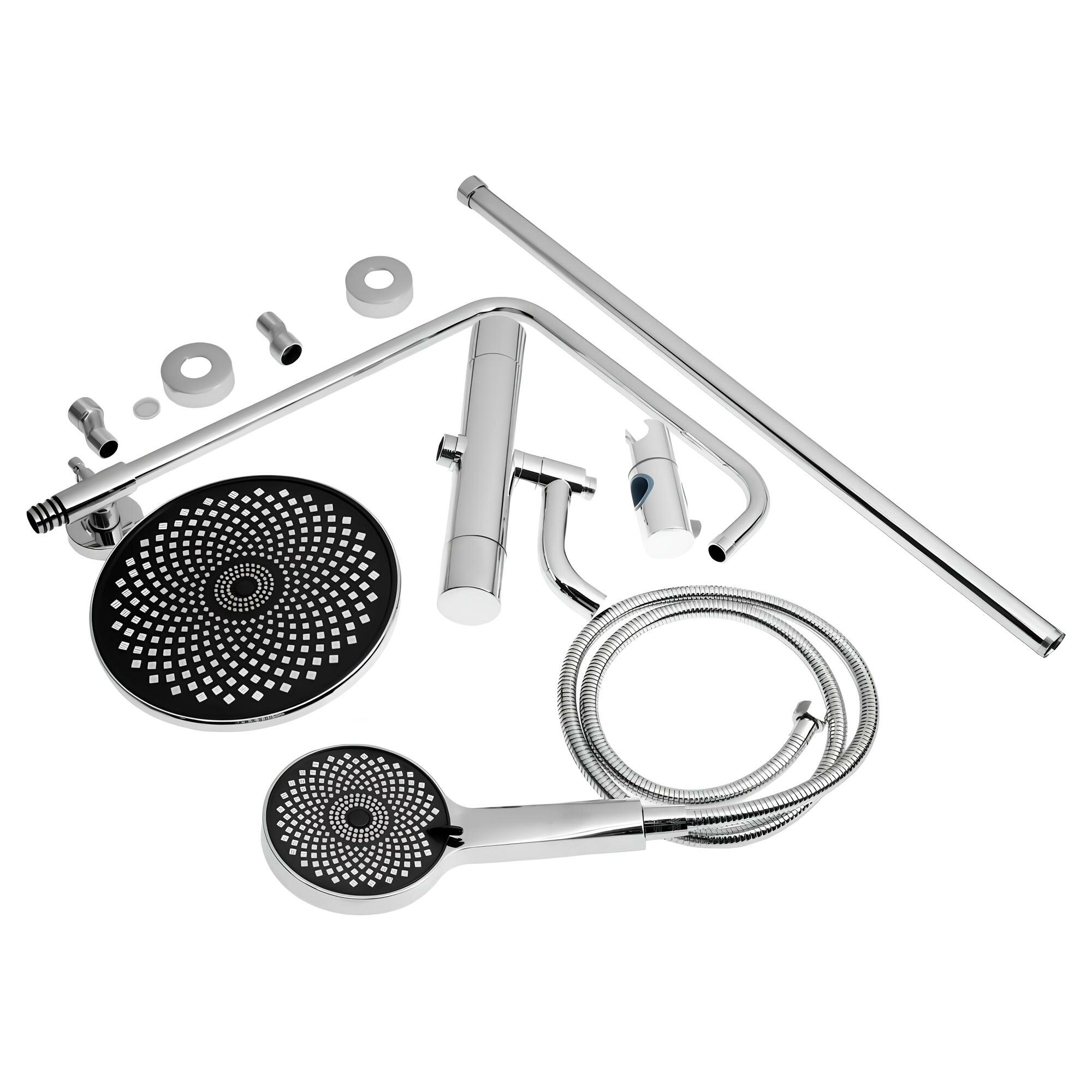 Система душевая BRIMIX с тропическим душем, терморегулятором и двумя квадратными лейками хром, телескопическая от 840 - 1220 мм, арт.3098