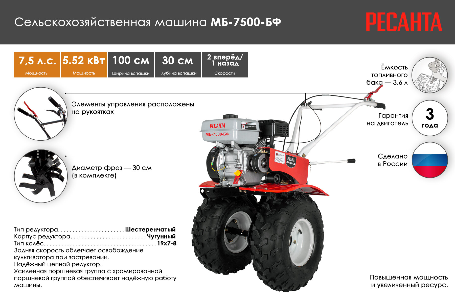 СохранитьМотоблок ( Мотокультиватор Бензиновый) МБ-7500-БФ Ресанта интересное: