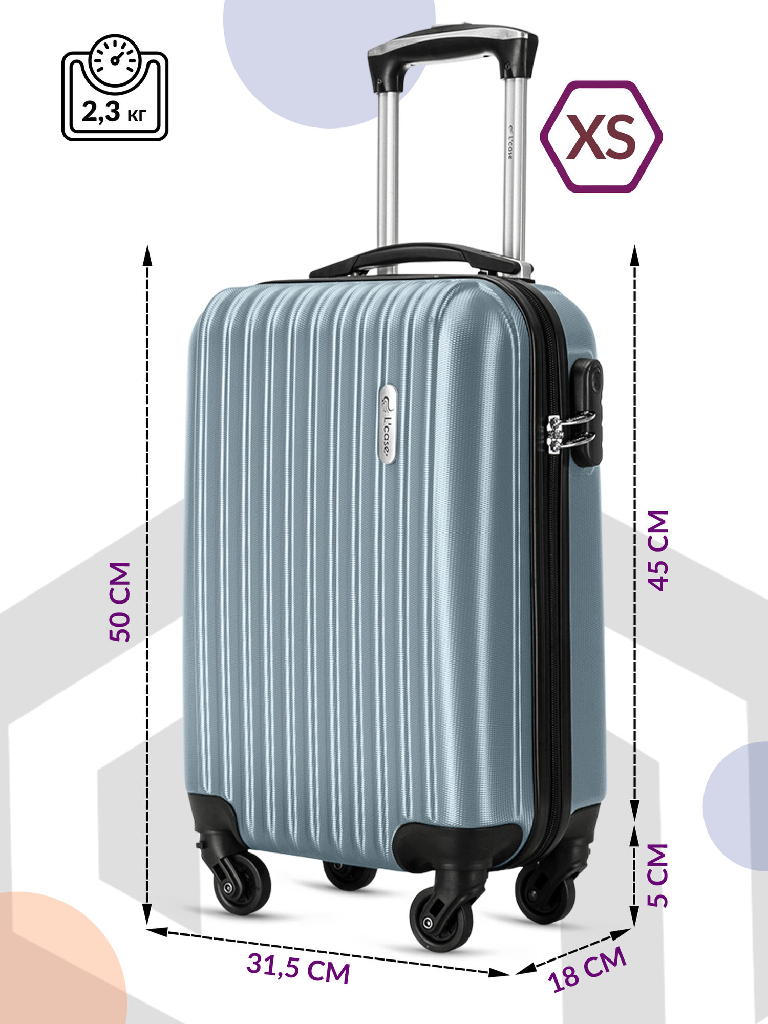 Чемодан на съемных колесах маленький XS Krabi, ABS пластик, дорожный, ударопрочный, голубой, кодовый замок, ручная кладь, 50 см, 23 л