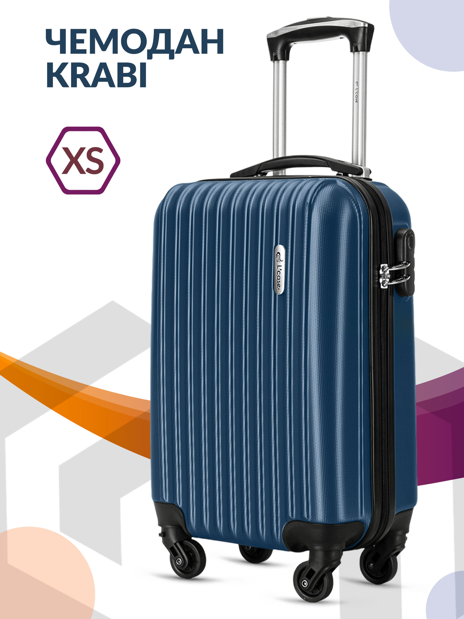 Купить Чемодан на съемных колесах маленький XS Krabi, ABS пластик, дорожный, ударопрочный, синий, кодовый замок, ручная кладь, 50 см, 23 л
