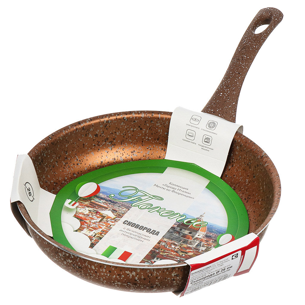 Сковорода VARI "Города Италии" 28 см коричневый гранит, с антипригарным покрытием из безопасного пищевого алюминия и жаропрочной бакелитовой ручкой , можно мыть в посудомоечной машине