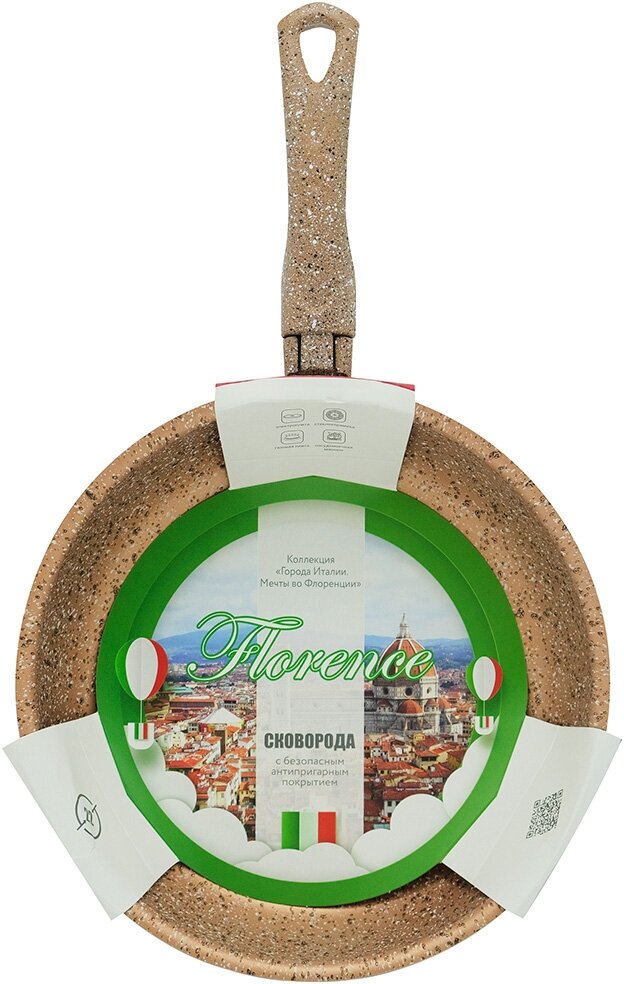 Сковорода VARI "Города Италии" 24 см коричневый гранит, с антипригарным покрытием из безопасного пищевого алюминия и жаропрочной бакелитовой ручкой , можно мыть в посудомоечной машине