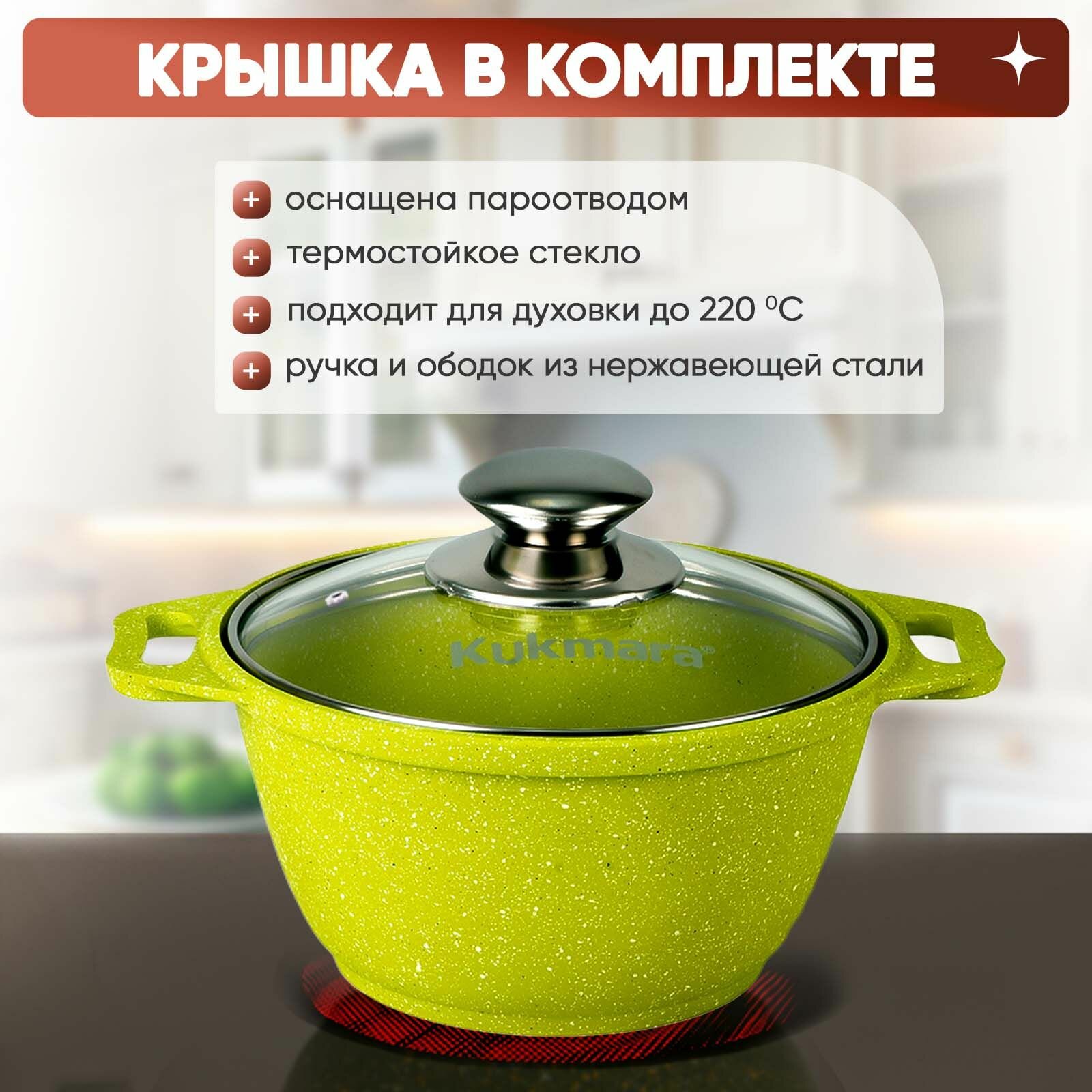 Кастрюля Kukmara Trendy style, 2 л, стеклянная крышка, антипригарное покрытие, лайм
