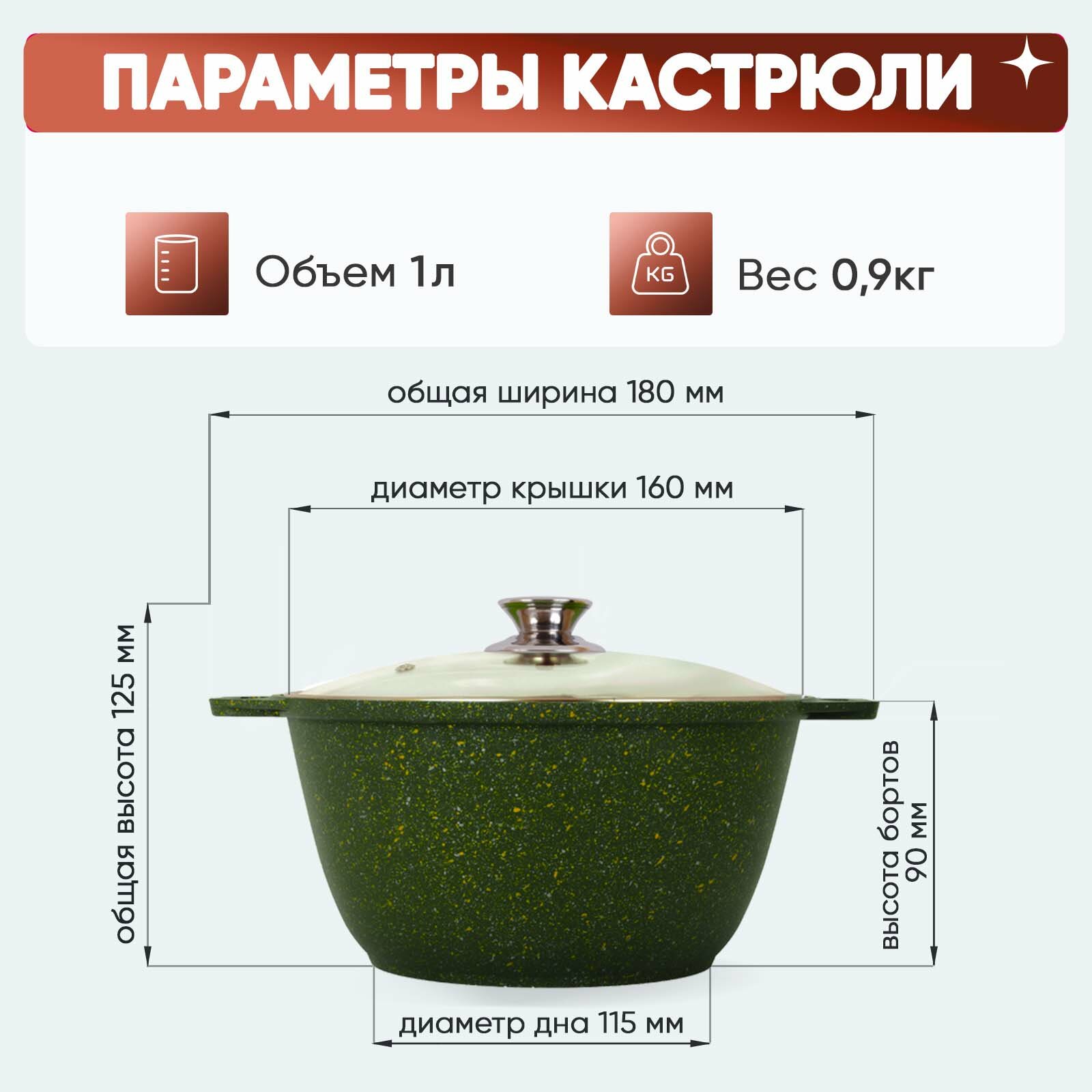 Кастрюля "Kukmara" 1л. со стеклянной крышкой, с антипригарным покрытием, "Trendy style" (Malachite)