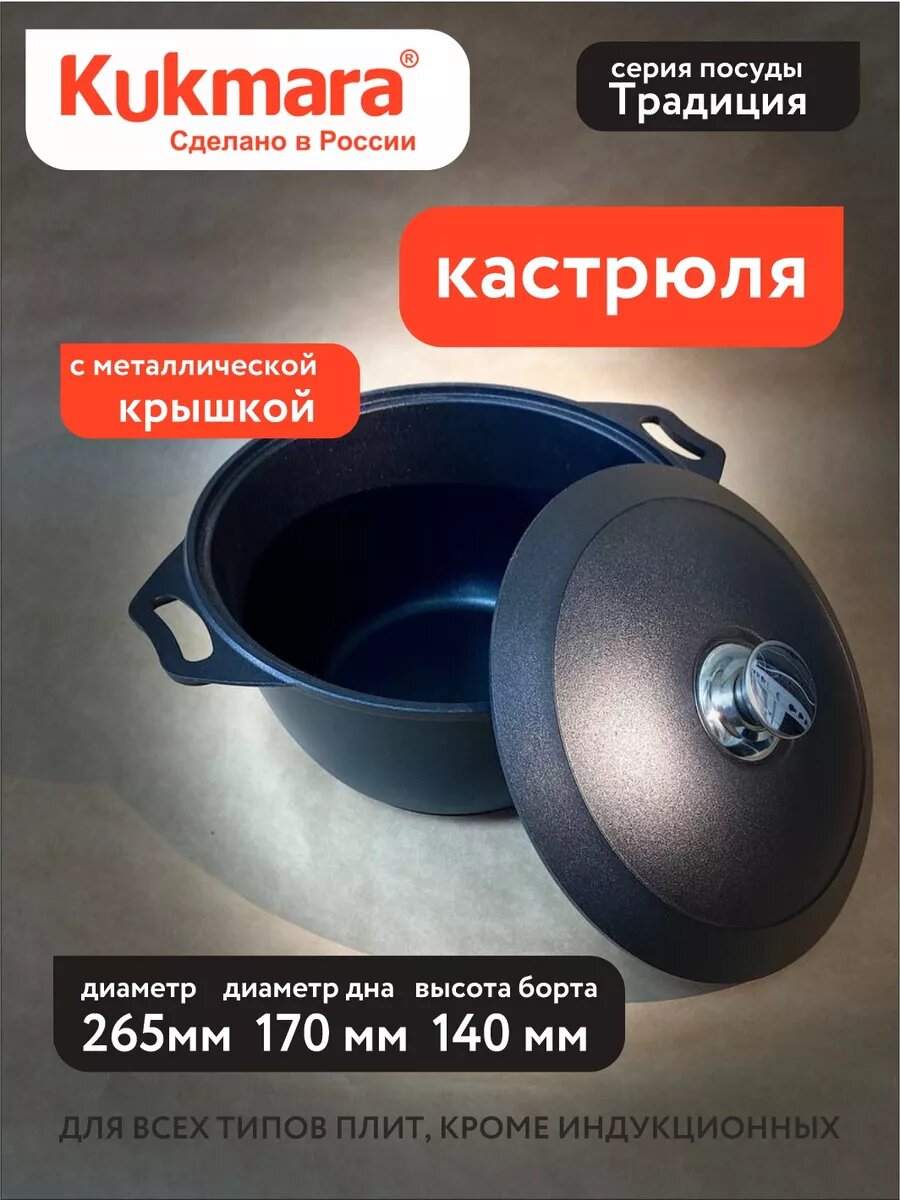 Кастрюля KUKMARA, 10 л, алюминиевая крышка