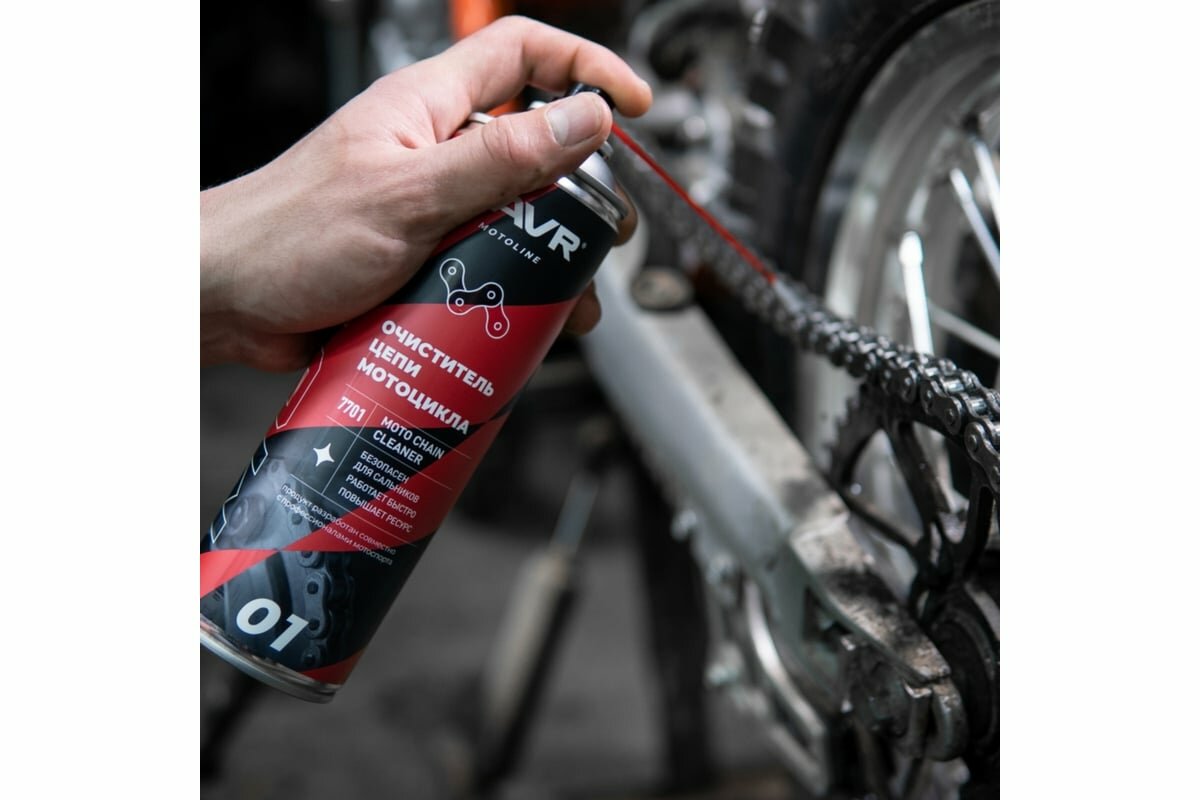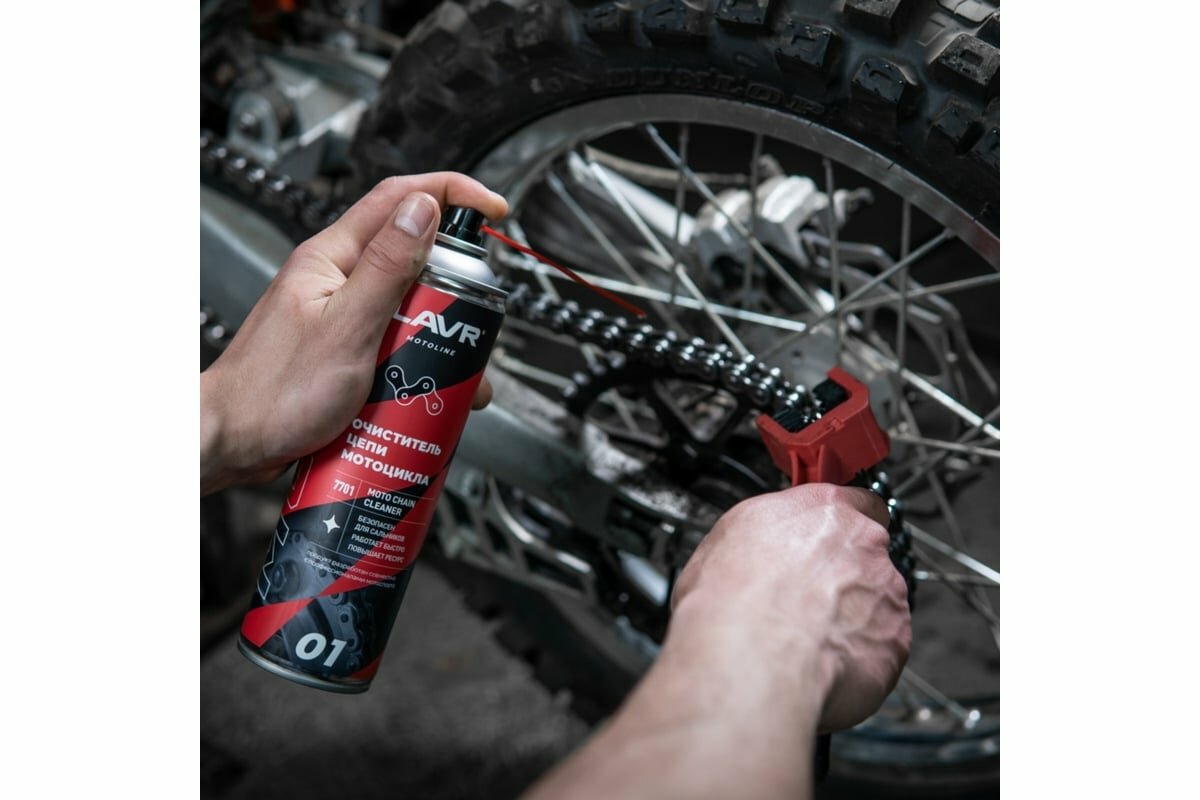 LAVR LN7701 Очиститель цепей 650мл - очиститель цепи мотоцикла, подходит для всех типов приводных цепей мото- и велотехники, безопасен для O, X и Y сальников, аэрозоль