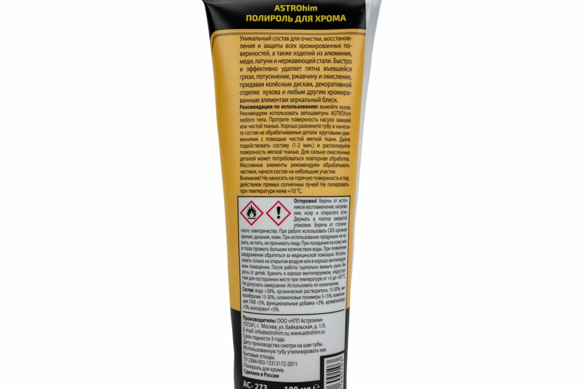 Полироль для хрома, туба, 100 мл Ас-273 Астрохим