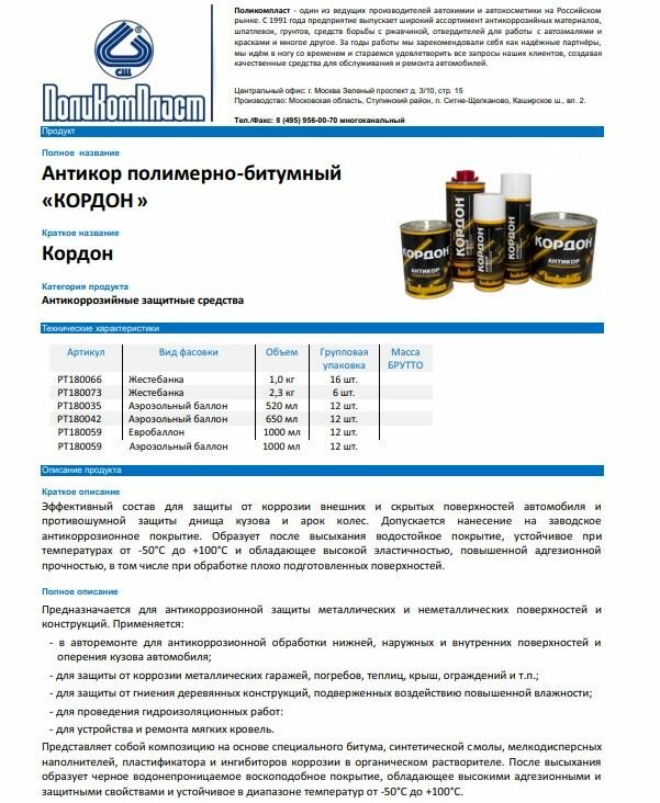 Поликомпласт PT180073 PT180073_Антикор 'кордон' 2,3 кг (6шт.)