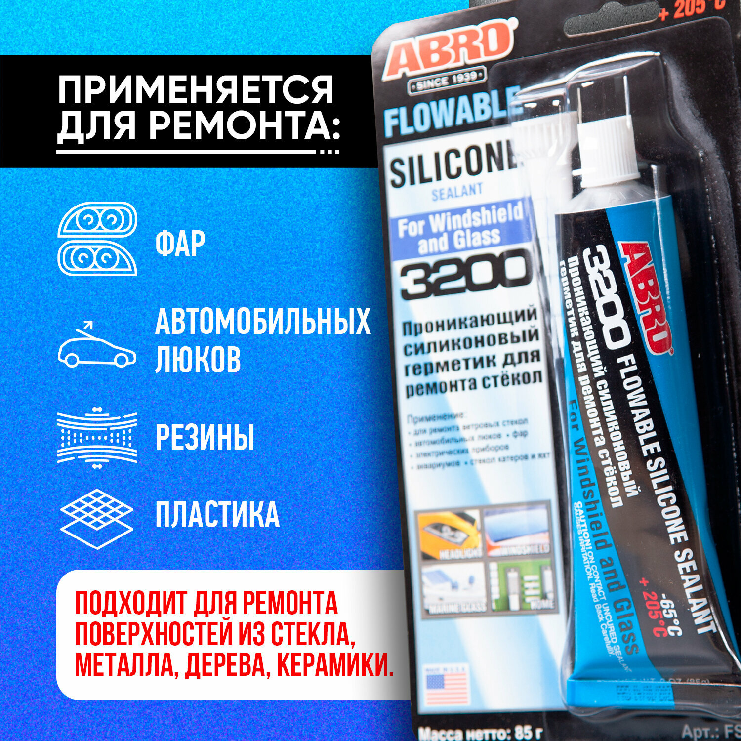 Универсальный силиконовый герметик для ремонта автомобиля ABRO FS-3200-R, 0.085 кг