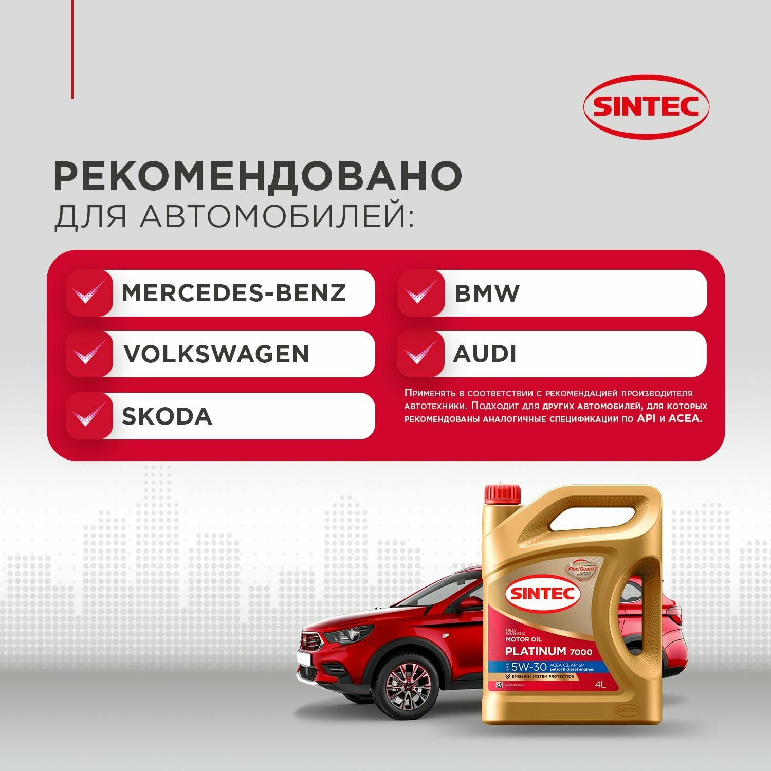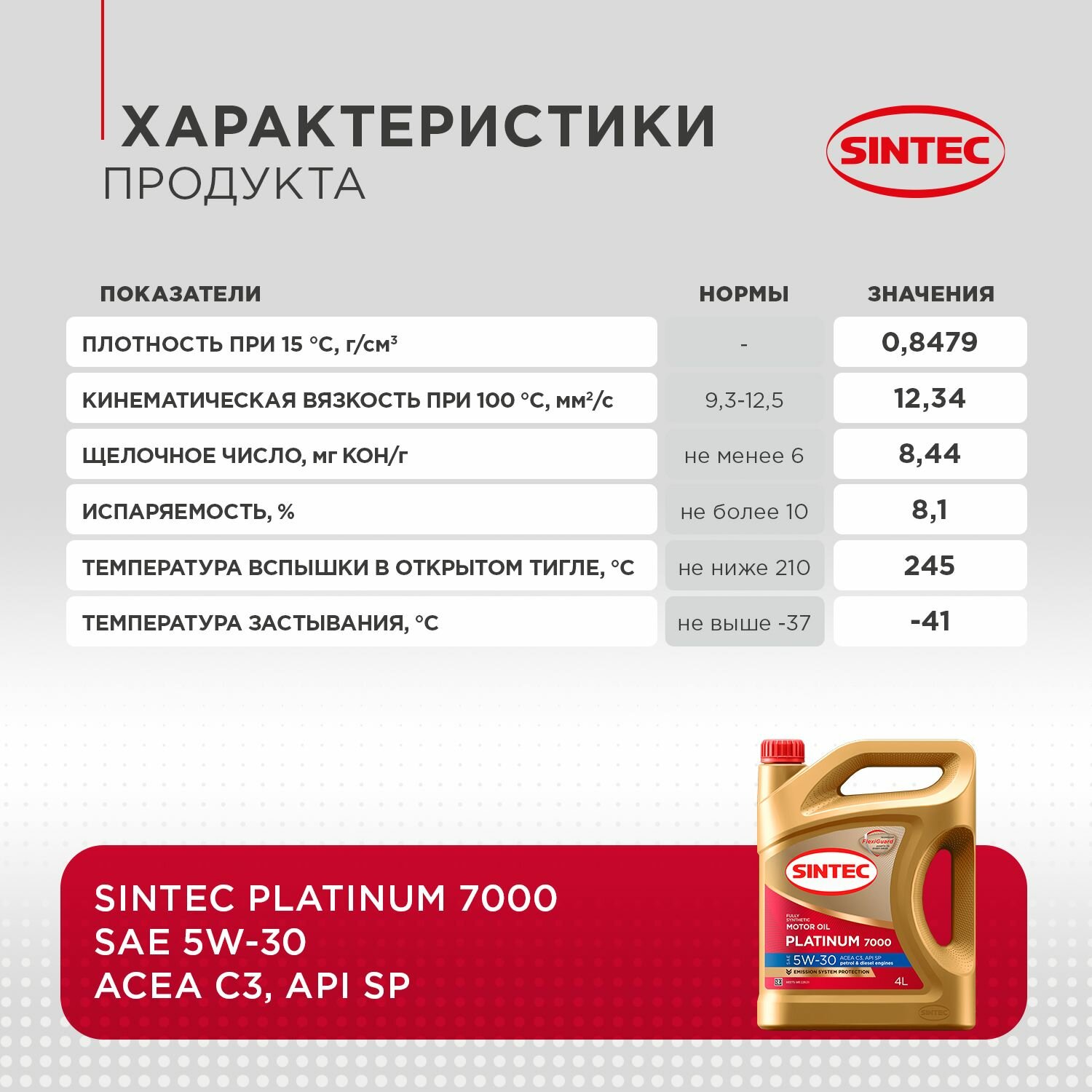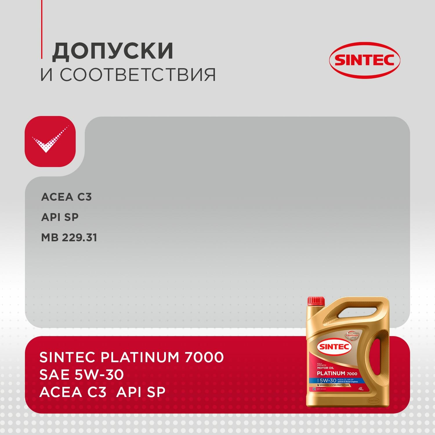 СохранитьSINTEC Sintec Platinum 7000 5W30 (4L) Масло Моторное! Синт Api Sp, Acea C3, Mb 229.31, Vw 502.00/505.00 интересное: