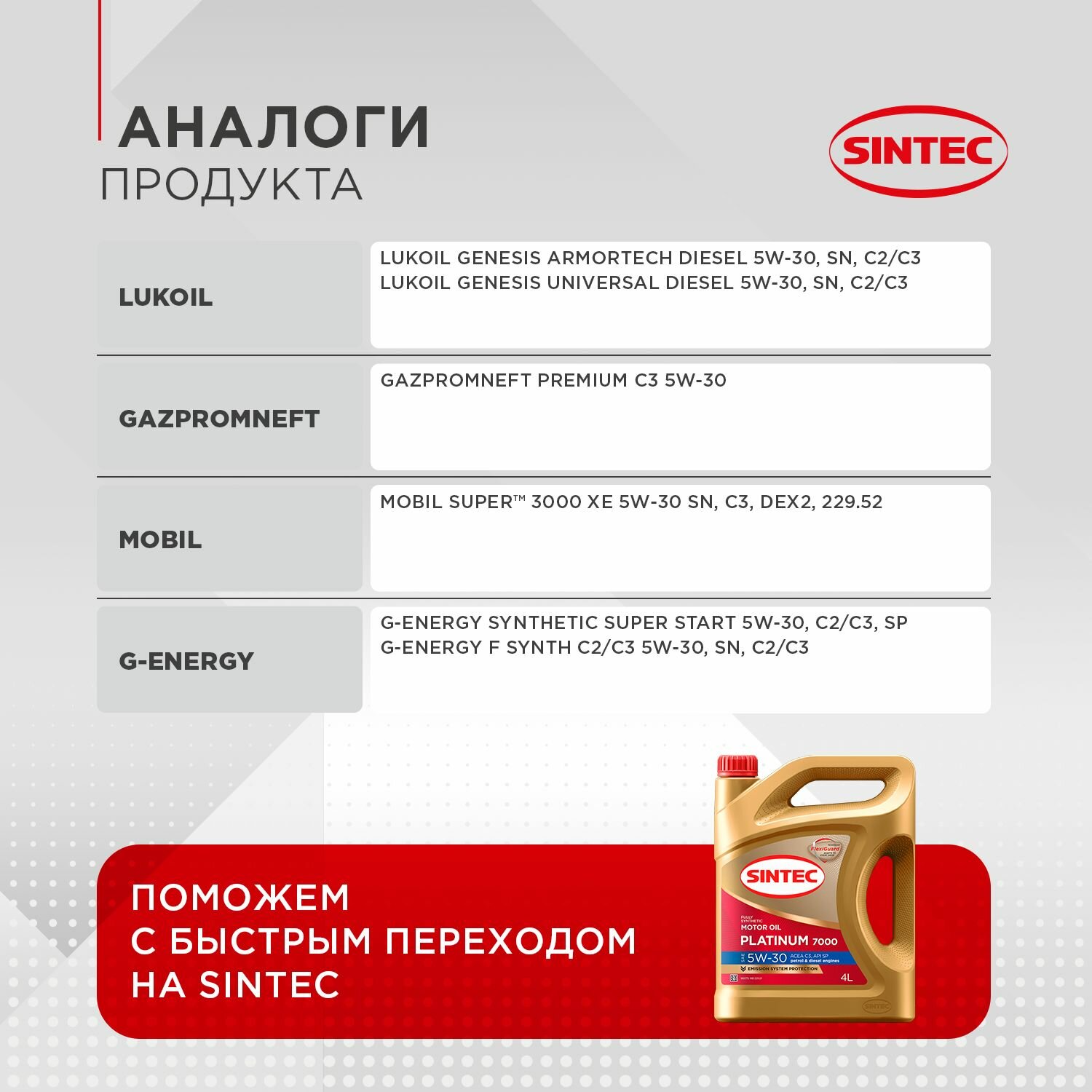 масло sintec 5w30 platinum 7000 api sl acea a5/b5 5л по цене 4л син акция