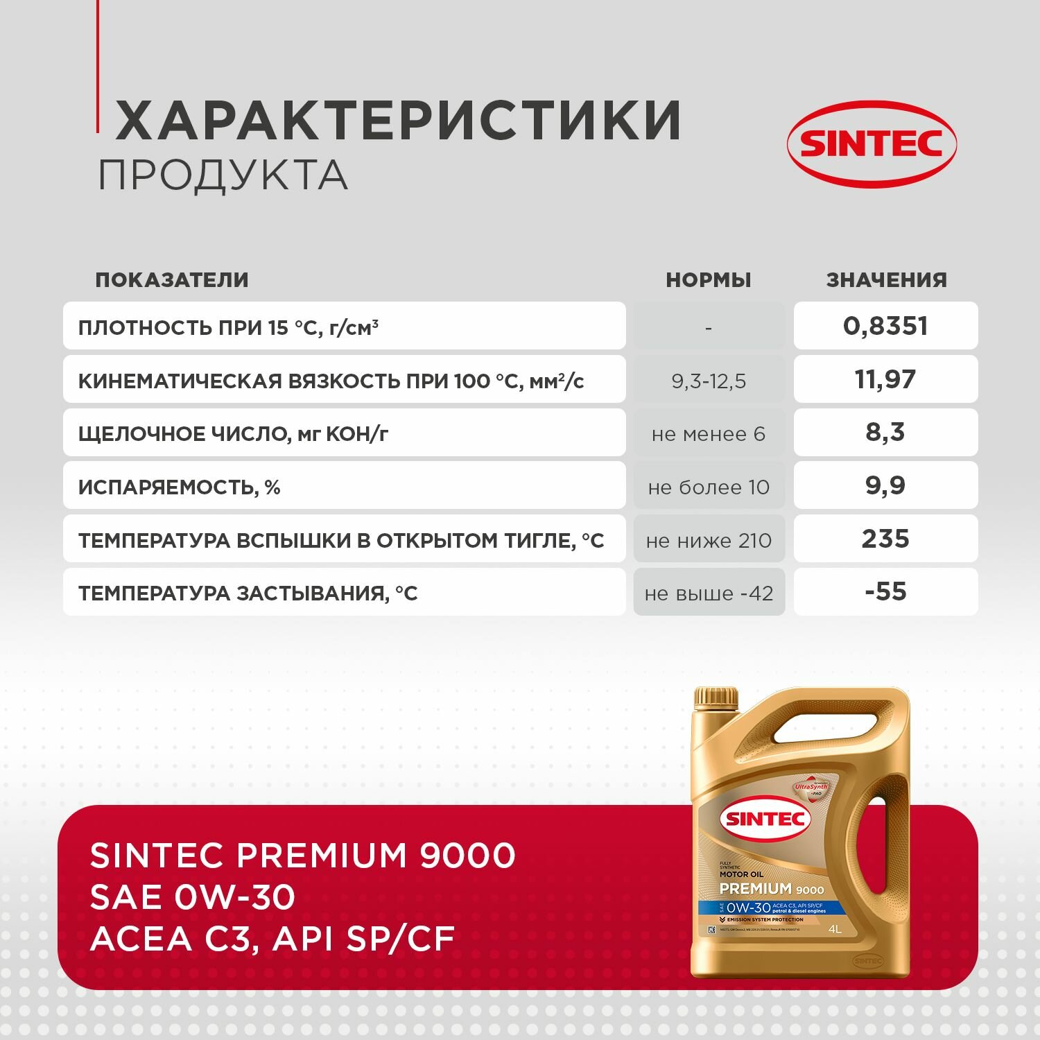 СохранитьSINTEC Масло Sintec Premium 9000 0W-30 C3 Sp/Cf 4Л интересное: