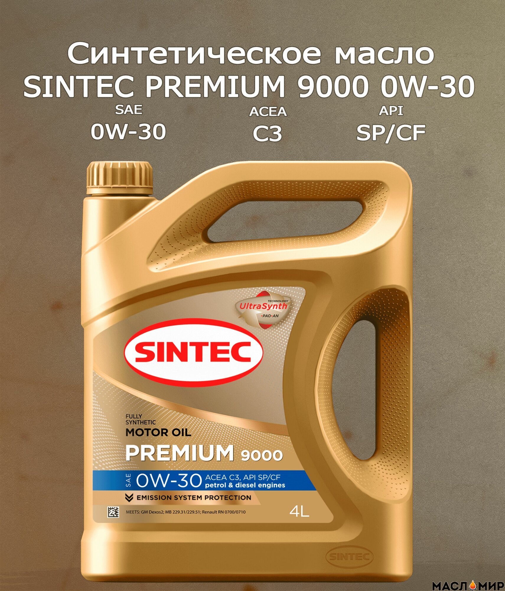 Купить SINTEC Масло Sintec Premium 9000 0W-30 C3 Sp/Cf 4Л