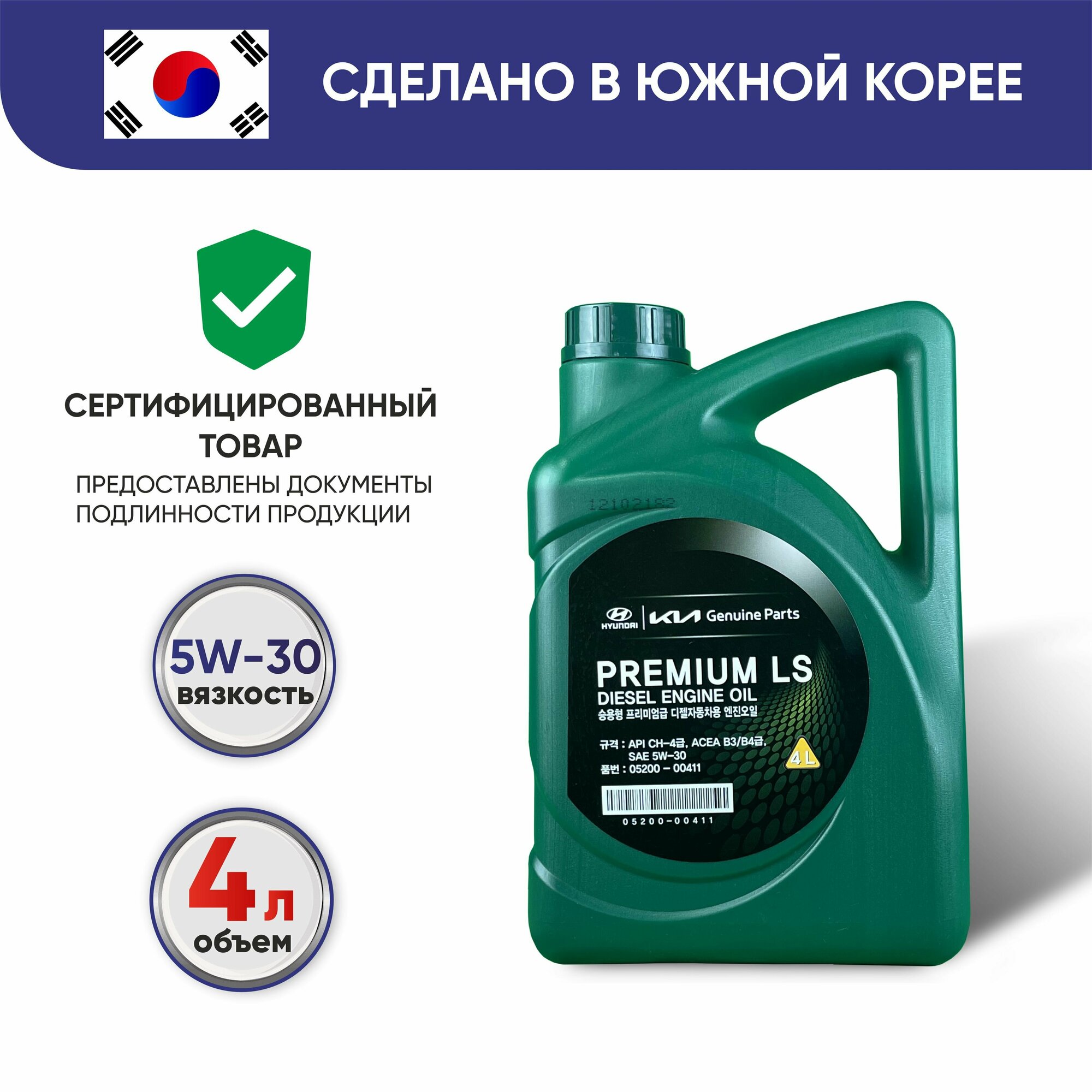 Масло моторное Premium LS Diesel 5W30 4л Hyundai/KIA 05200-00411