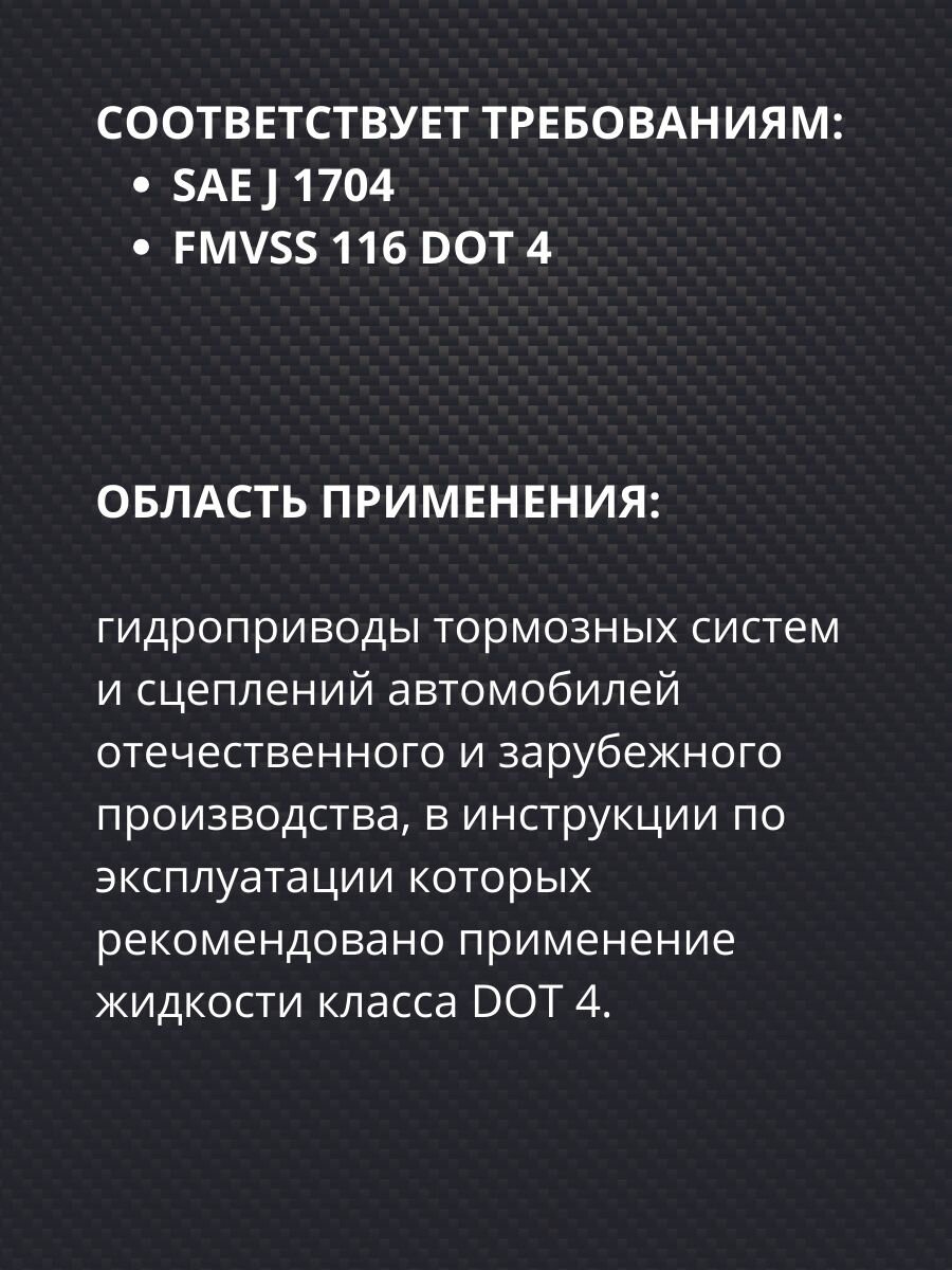 | Допуски и стандарты | FMVSS 116 DOT 4, SAE J 1703 |