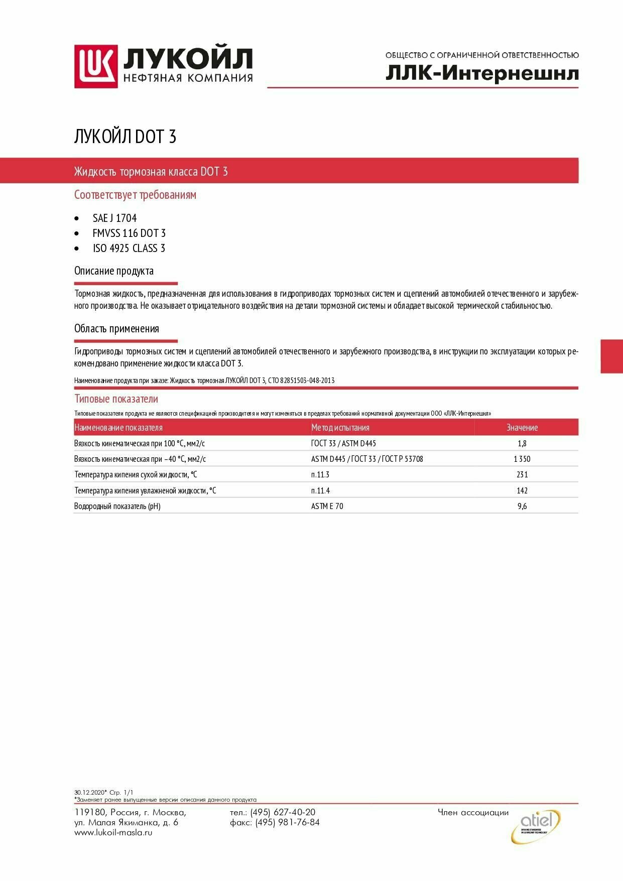 Тормозная жидкость Лукойл DOT 3 0,910 кг интересное: