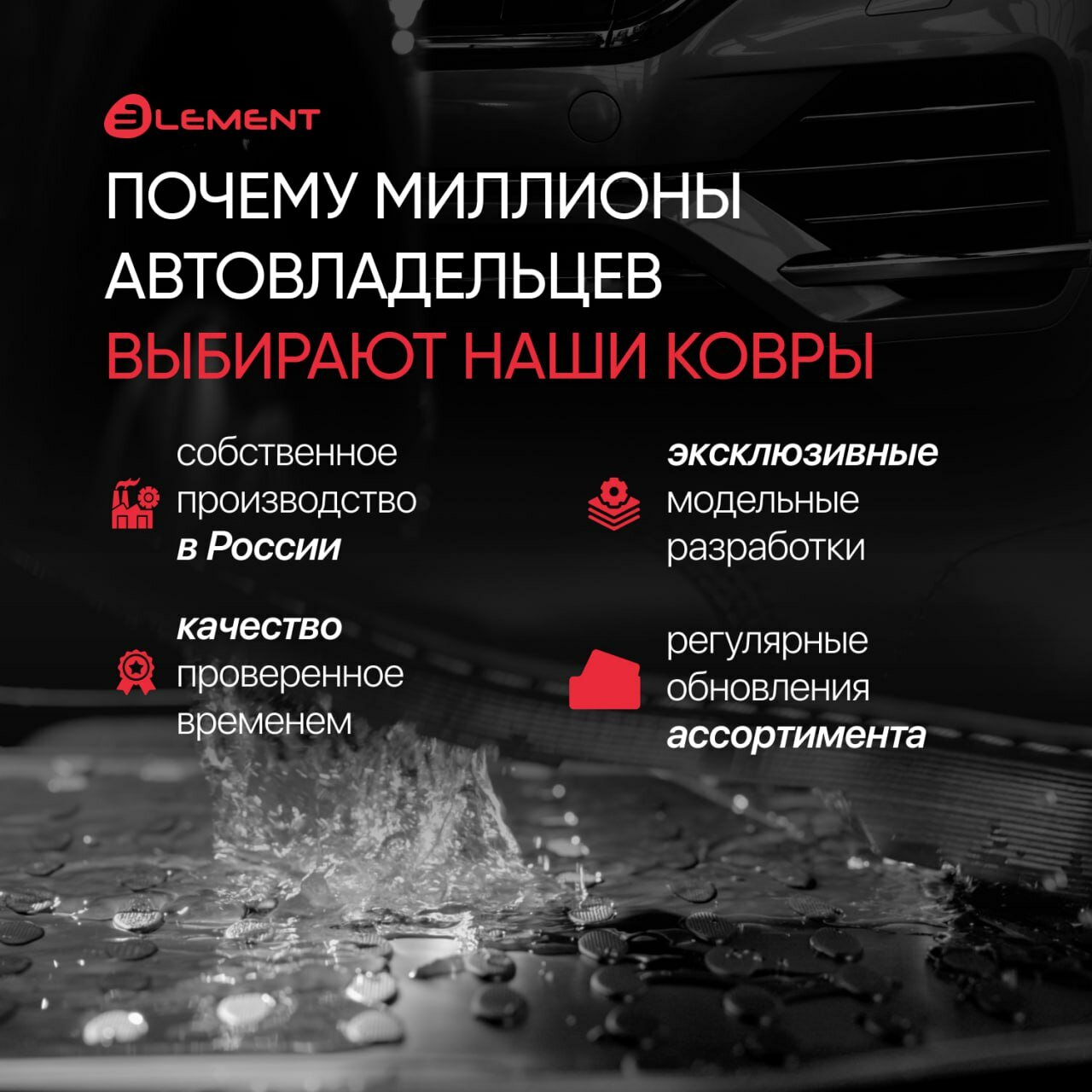 Коврики 3D В Салон Полиуретан ELEMENT арт. CARFRD00009k
