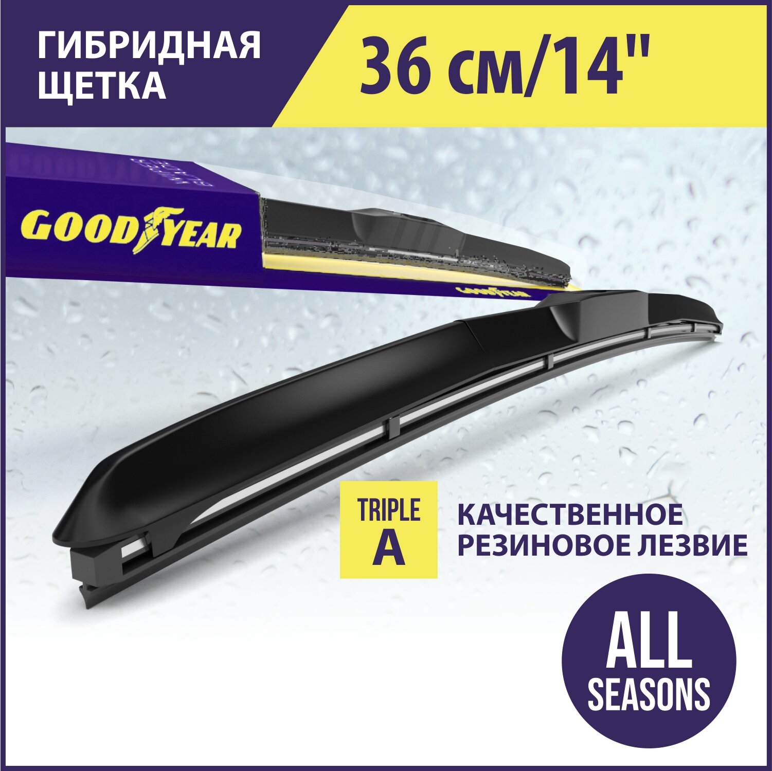 Гибридная щетка стеклоочистителя Goodyear HYBRID 14"/36 cm всесезонная/дворники для автомобиля/щетки стеклоочестителя