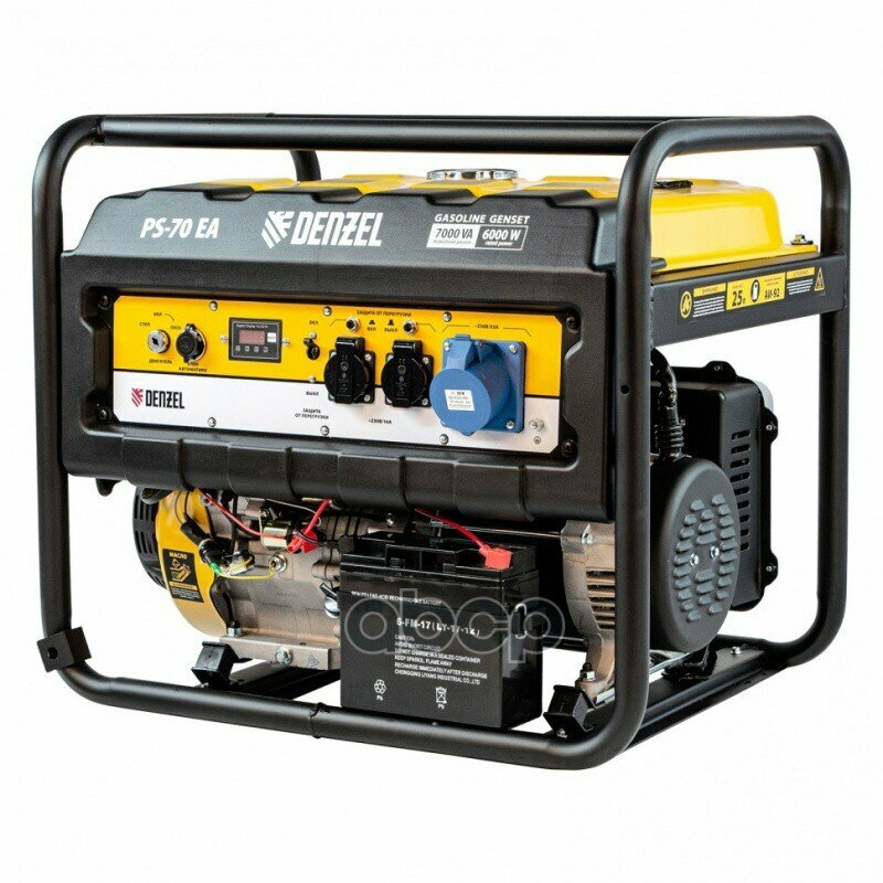 Генератор бензиновый PS 70 EA, 7.0 кВт, 230 В, 25 л, коннектор автоматики, электростартер Denzel