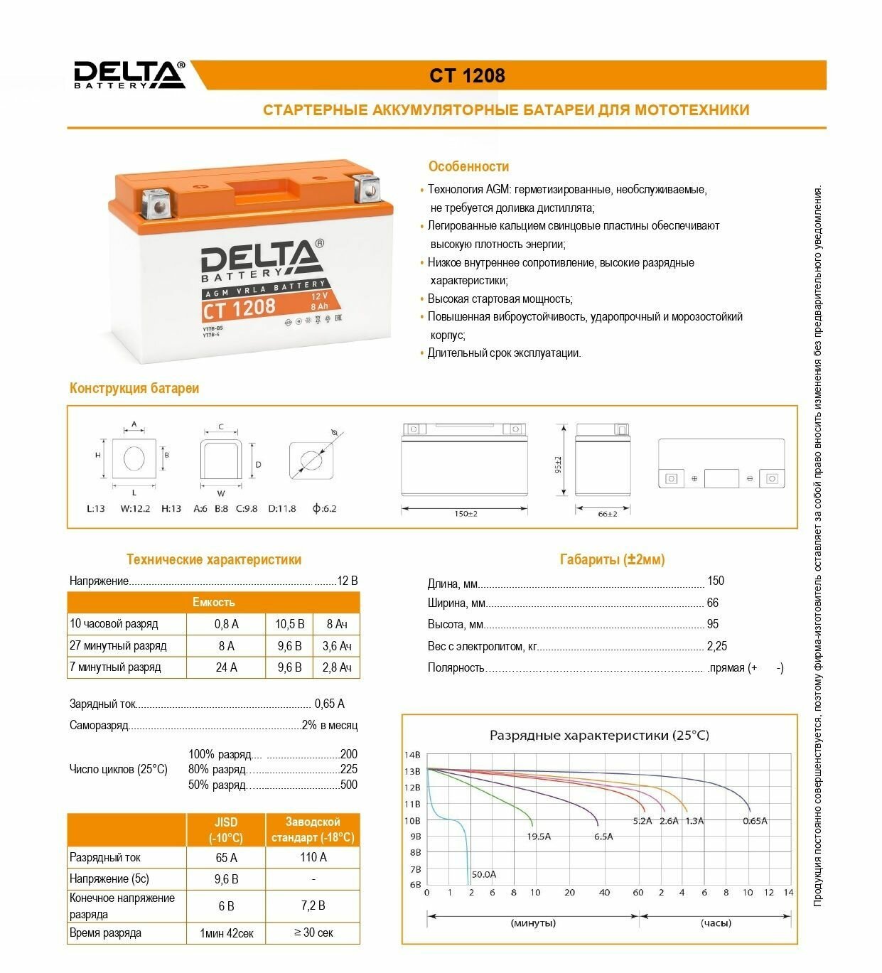 СохранитьАккумулятор для мототехники Delta CT 1208 (12V / 8Ah) (YT7B-BS, YT7B-4, YT9B-BS) интересное: