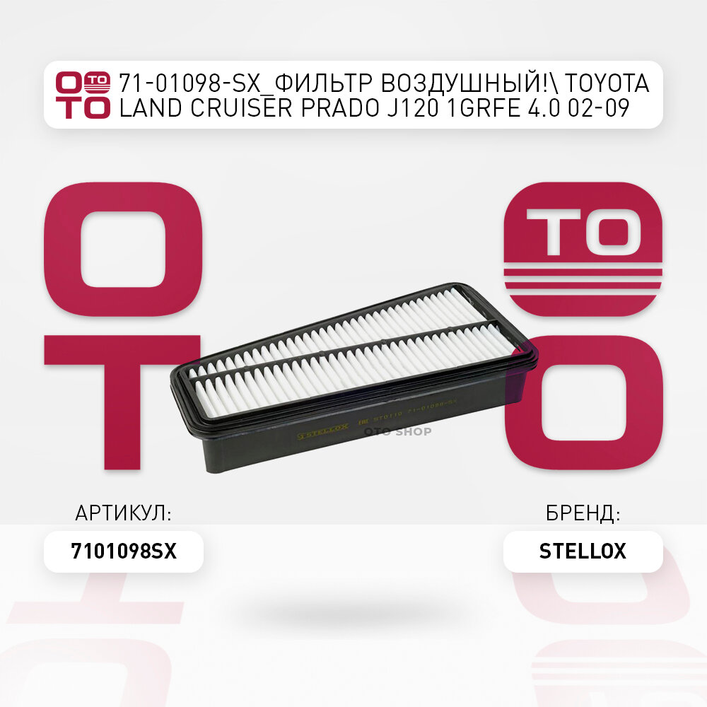 71-01098-SX_фильтр воздушный!\ Toyota Land Cruiser Prado J120 1GRFE 4.0 02-09 STELLOX 7101098SX
