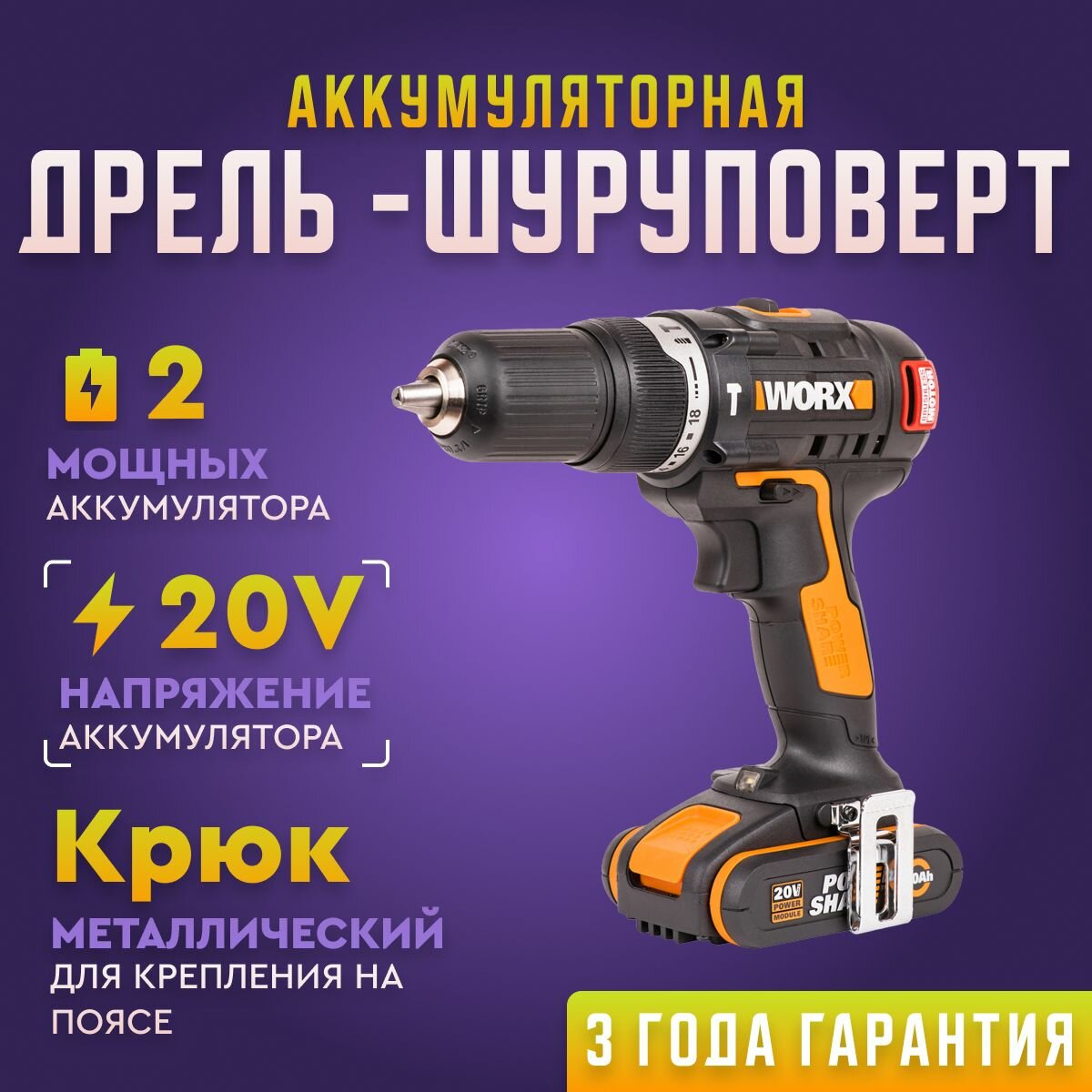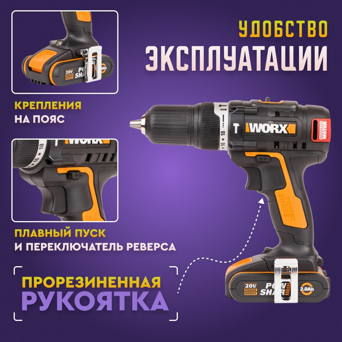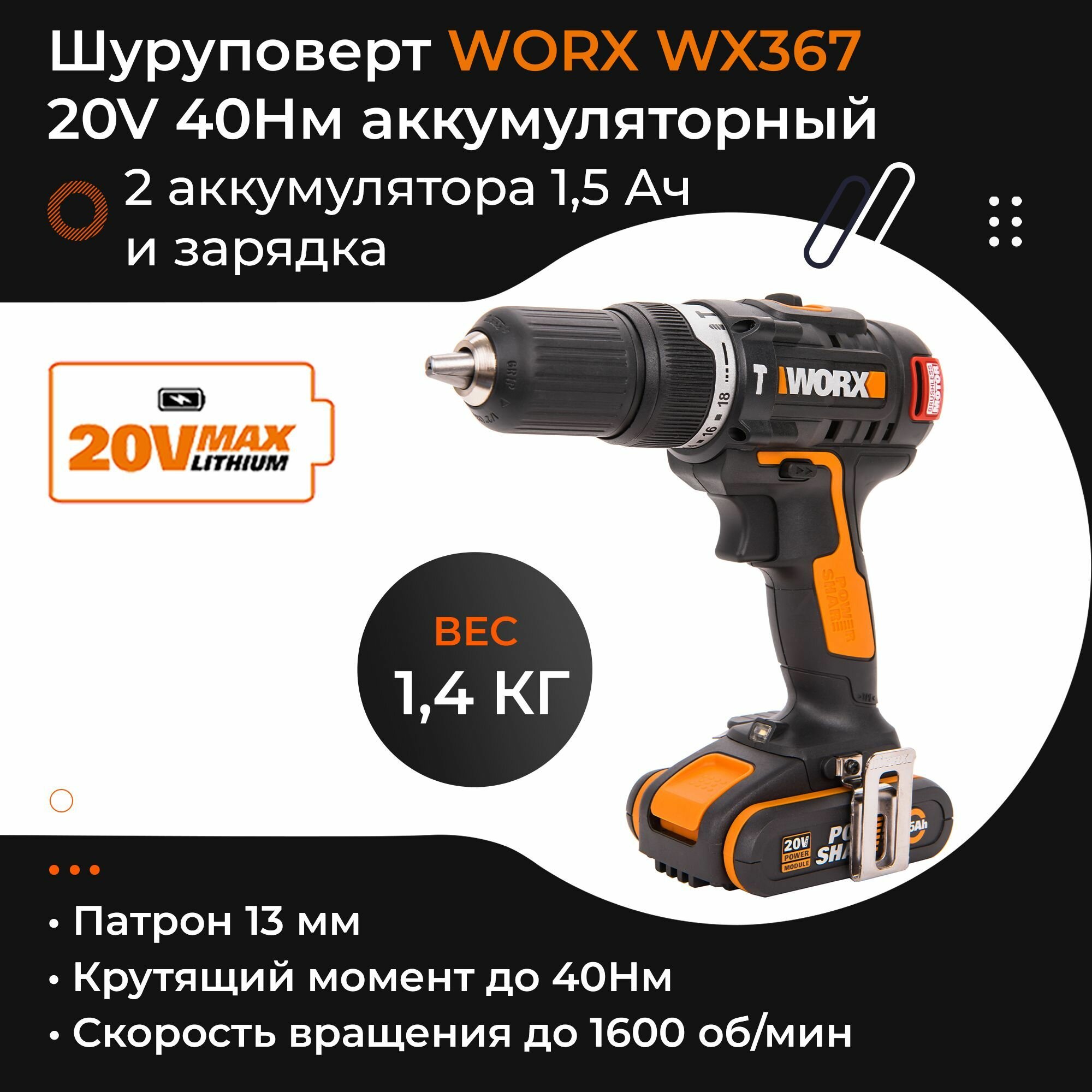 Дрель-шуруповерт ударная аккумуляторная WORX WX367 интересное: