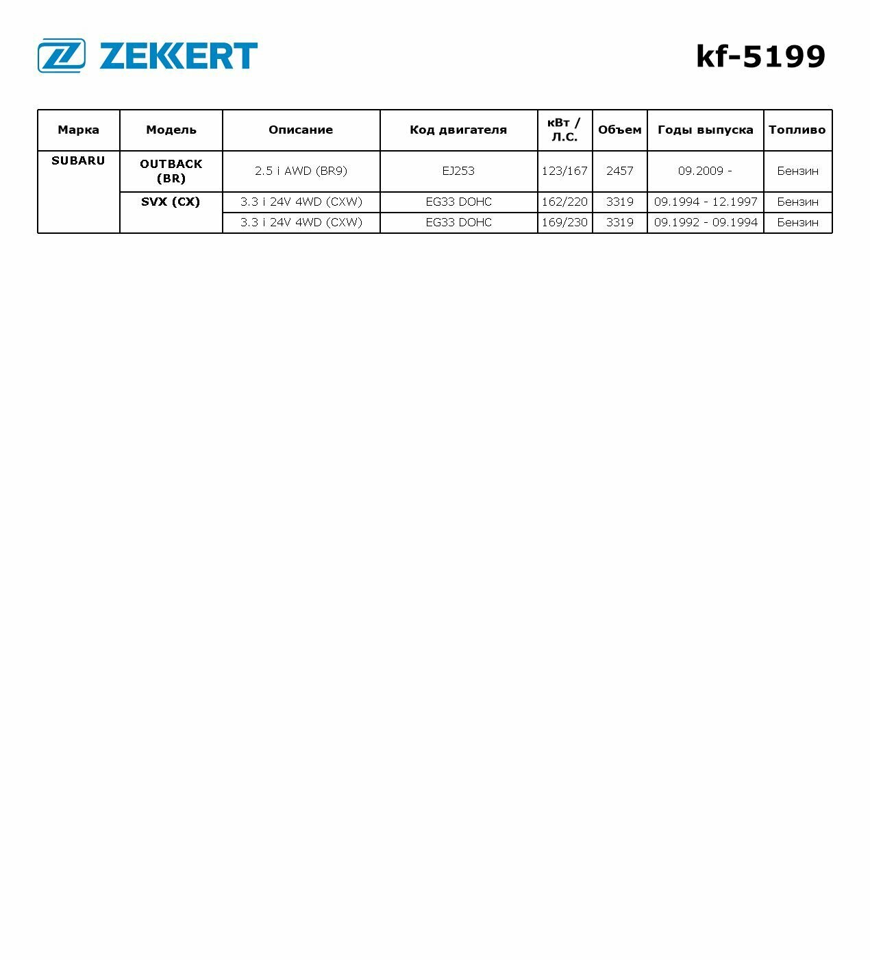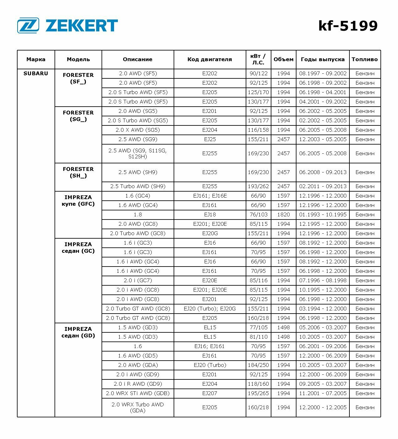 Фильтр Топл. Subaru Forester (Sf Sg) 97- Impreza (Gc Gf Gd) 92- Legacy (Bc Bd Be Bg) 89- S Zekkertkf-5199