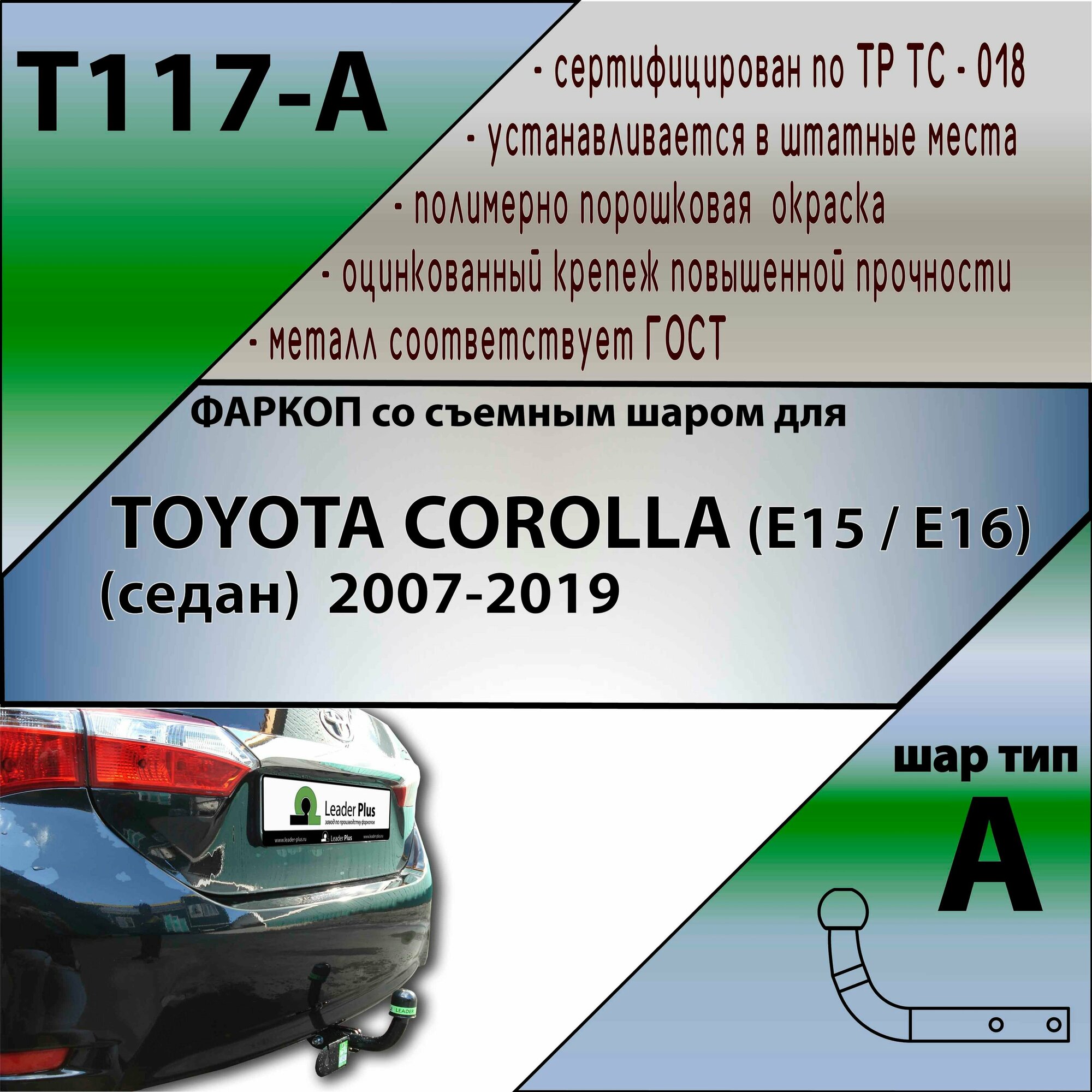 Фаркоп T117-A Лидер плюс для TOYOTA COROLLA (E150 / Е180) (седан) 2007-2013 / 2013-2019 (без электрики) интересное: