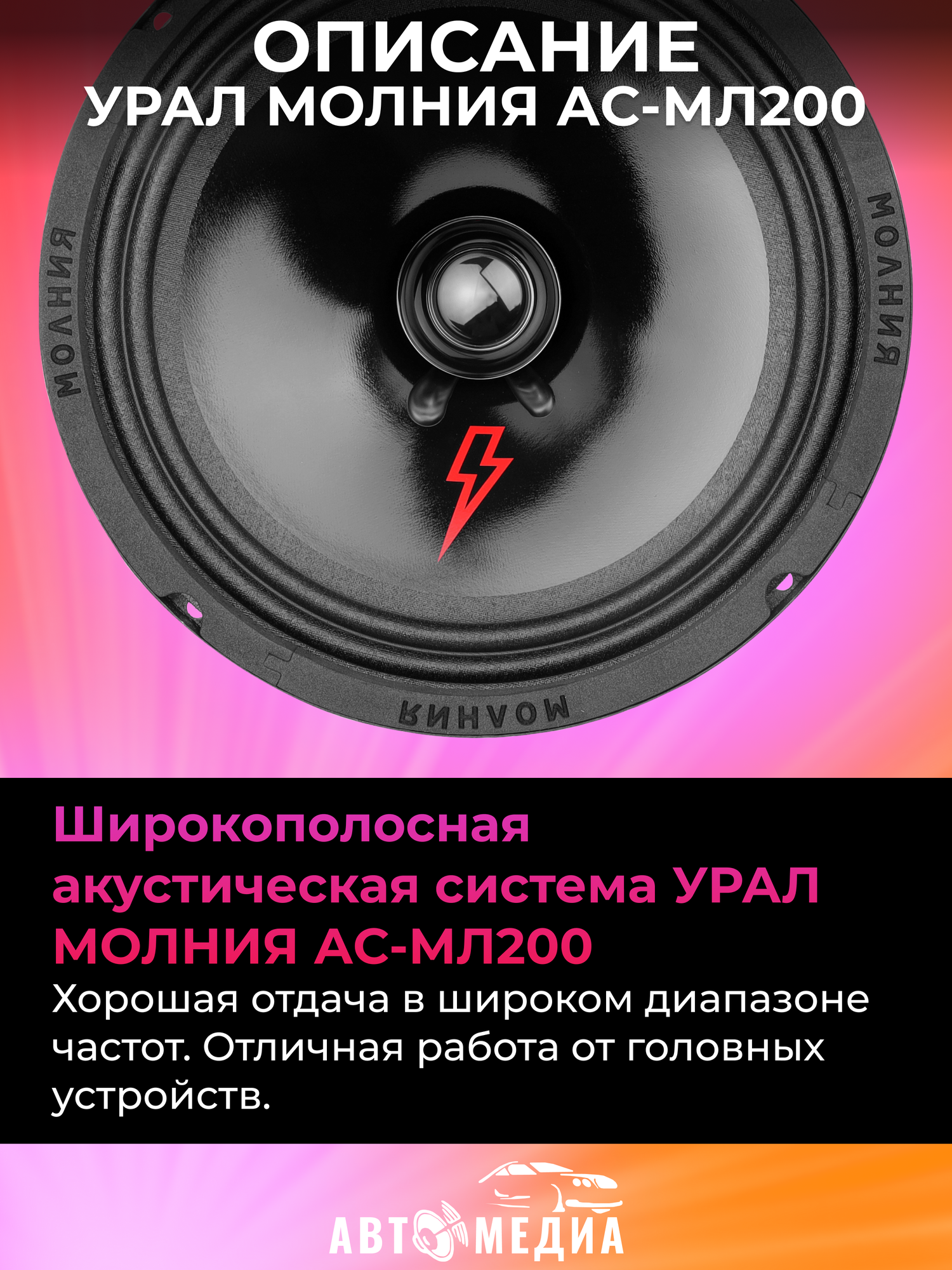 Колонки автомобильные URAL Молния АС-МЛ200, 20 см (8 дюйм.), комплект 2 шт. [урал ас-мл200]