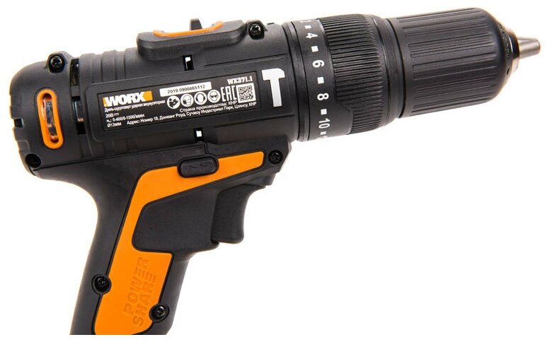 Дрель-шуруповерт аккумуляторная WORX WX371.1 20В с АКБ 2,0 А.ч (2 шт.) и ЗУ в кейсе