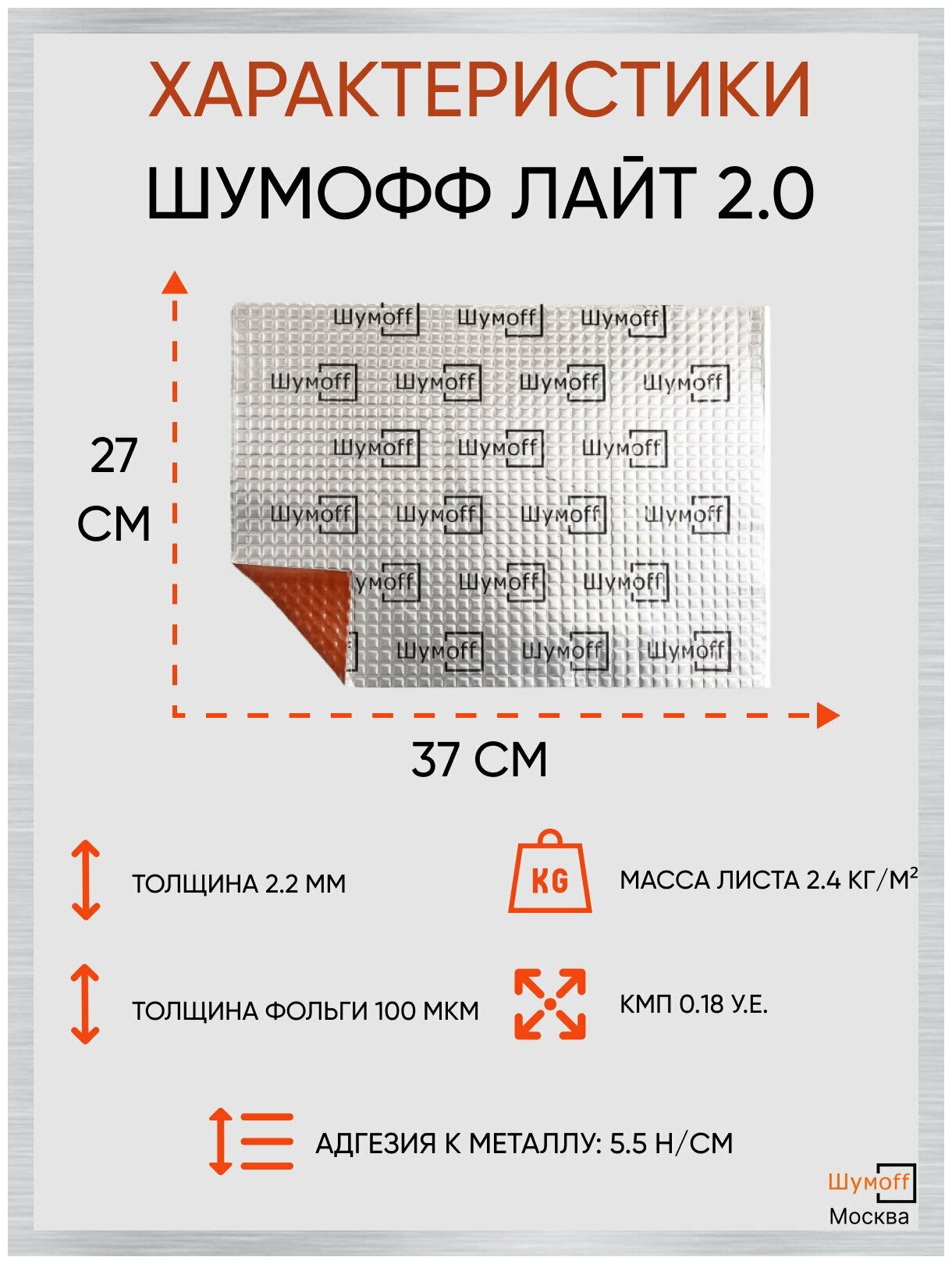 Шумоизоляция автомобиля Шумофф Light 2.0 облегченный вибропоглощающий самоклеющийся материал лист 37x27см - 22 листа