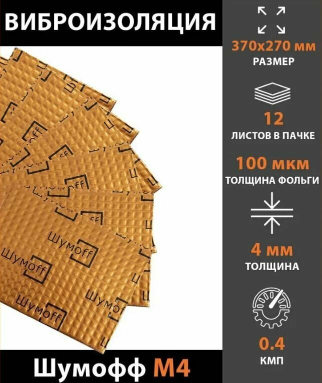 Шумоизоляция Шумофф М4 (12 листов) / размер листа 37см х 27 см / виброизоляция для автомобиля