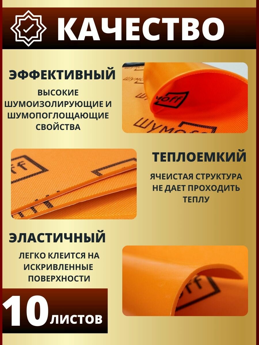 Шумоизоляция Шумофф М3 / Виброизоляция для автомобиля / 10 Листов / Шумоизоляция автомобиля для пола, дверей, крыши