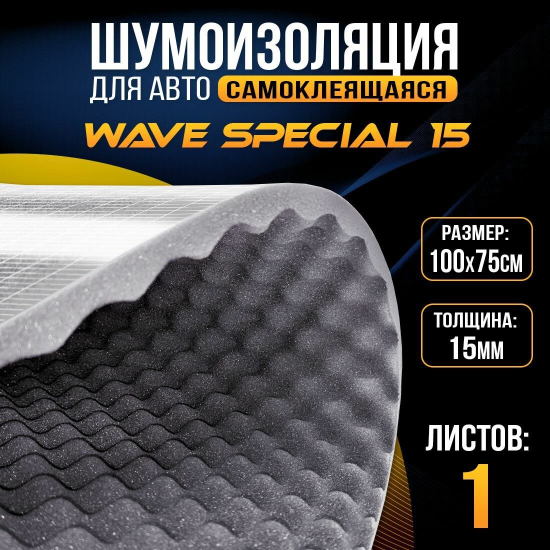 Купить Шумоизоляция DreamCar Волна Спешэл 15, 1 лист 100*75 см, вязкоэластичный акустический поролон самоклеящийся, Wave Special