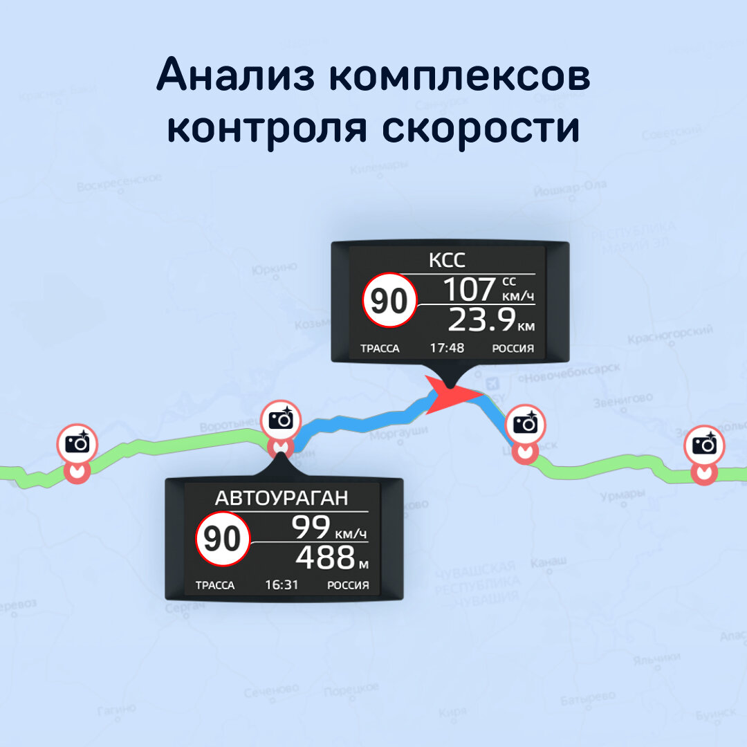 4. Голосовое и визуальное оповещение какой радар установлен (кречет, скат и т.д.). Также оповещает о возможности мобильной засады, муляжа камеры.