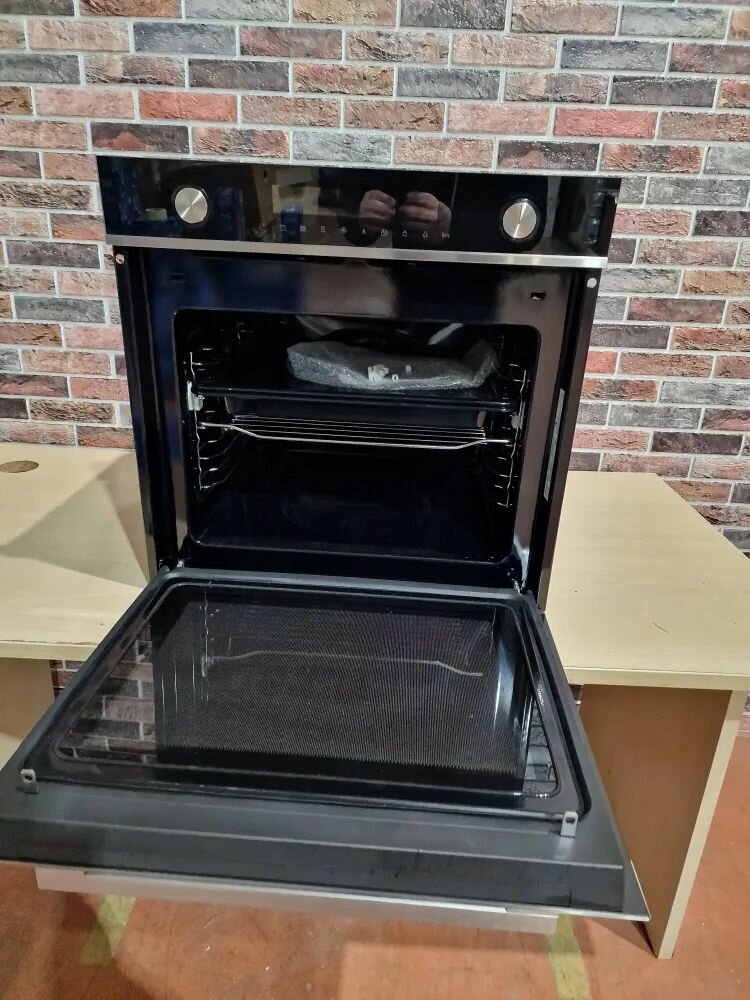 Духовка электрическая, удобный дисплей управления, даже с подсветкой. Нагревается супер быстро. Можно выбрать уровень температуры, которую духовка будет поддерживать. Остывает тоже быстро. Есть функция разморозки, гриль, таймер. Позже оценила ещё один плюс шкафа. Ручка и дверка во время работы не нагревается почти, поэтому нет риска обжечься при готовке или, если ребёнок решит прислониться. |