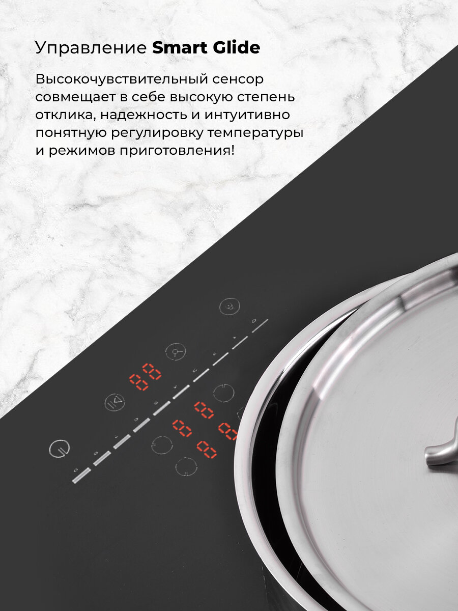 | Безопасность | защитное отключение конфорок / кнопка блокировки панели / индикатор остаточного тепла |