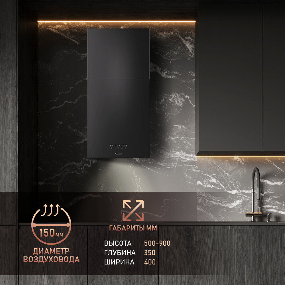 Купить Купольная вытяжка Weissgauff Box 40 PB Black, Производительность 900 м3/ч, Низкий уровень шума, LED-освещение