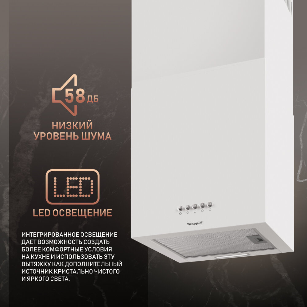 СохранитьКупольная вытяжка Weissgauff Box 40 PB White, Производительность 900 м3/ч, Низкий уровень шума, LED-освещение интересное: