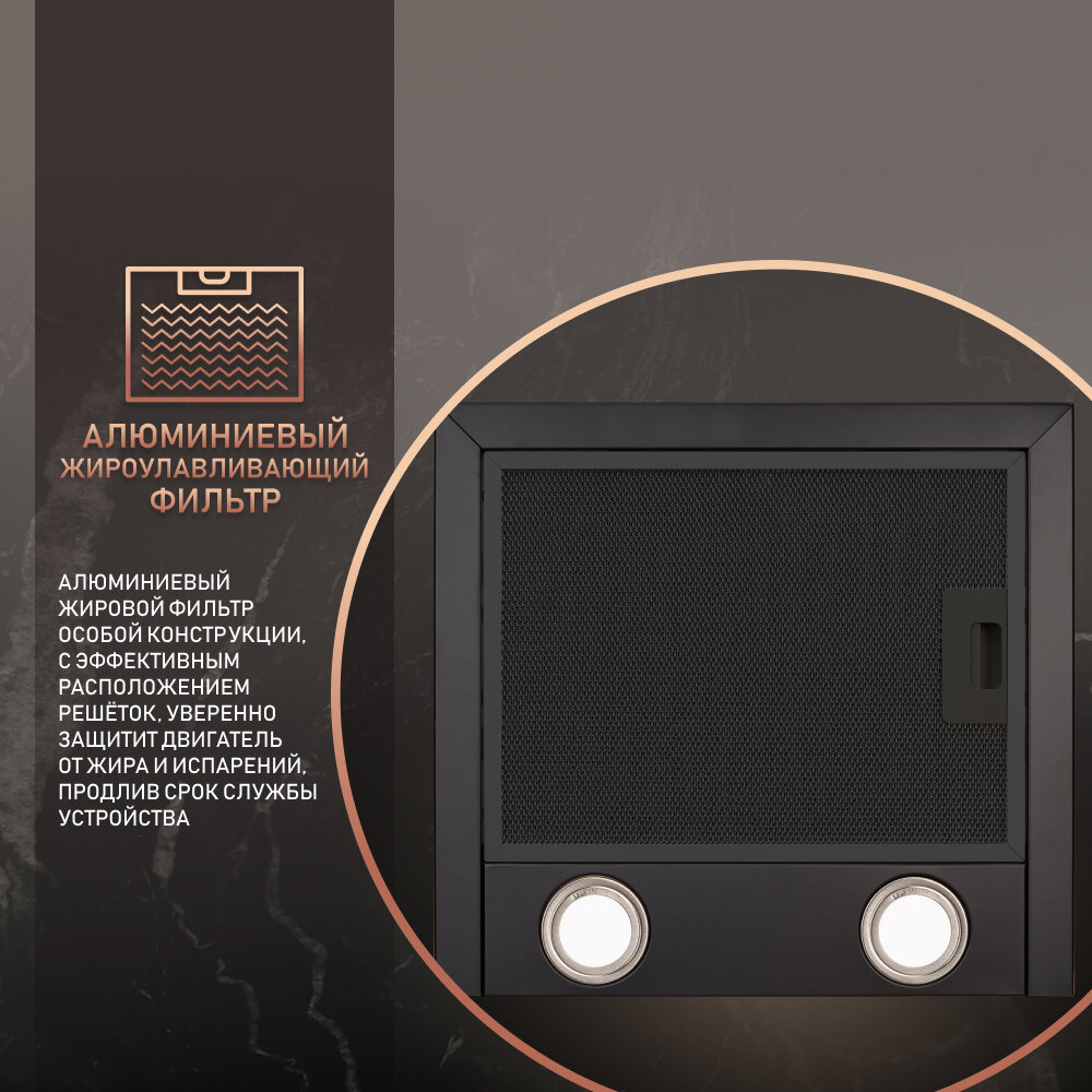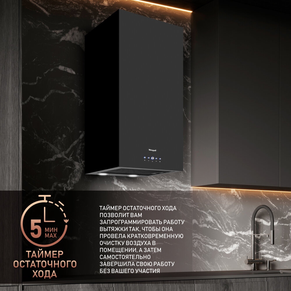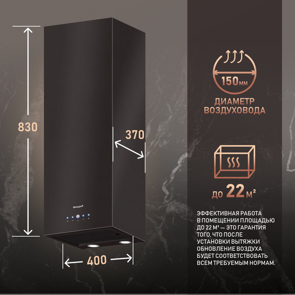 Купольная вытяжка Weissgauff Box 40 PB Black, Производительность 900 м3/ч, Низкий уровень шума, LED-освещение